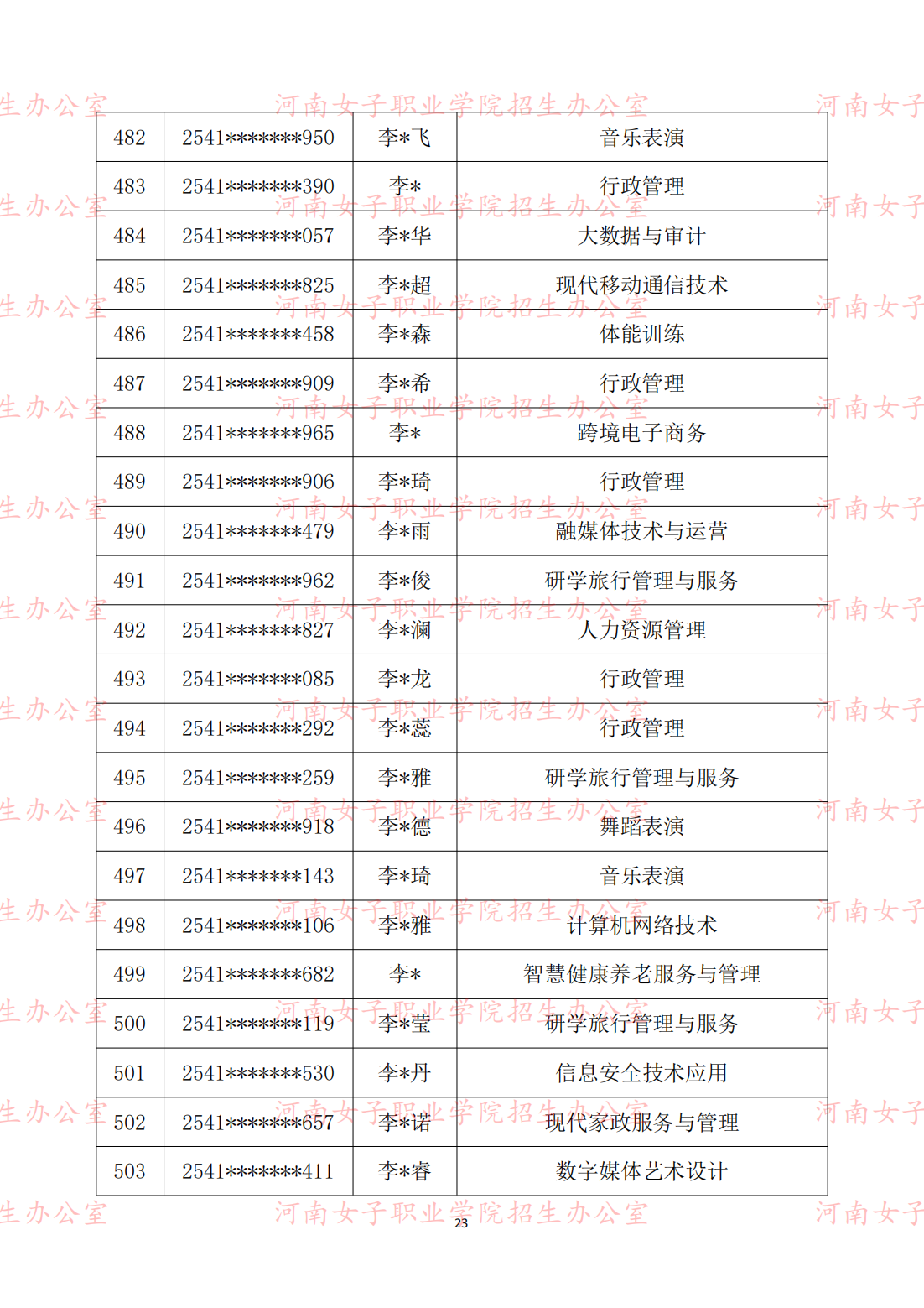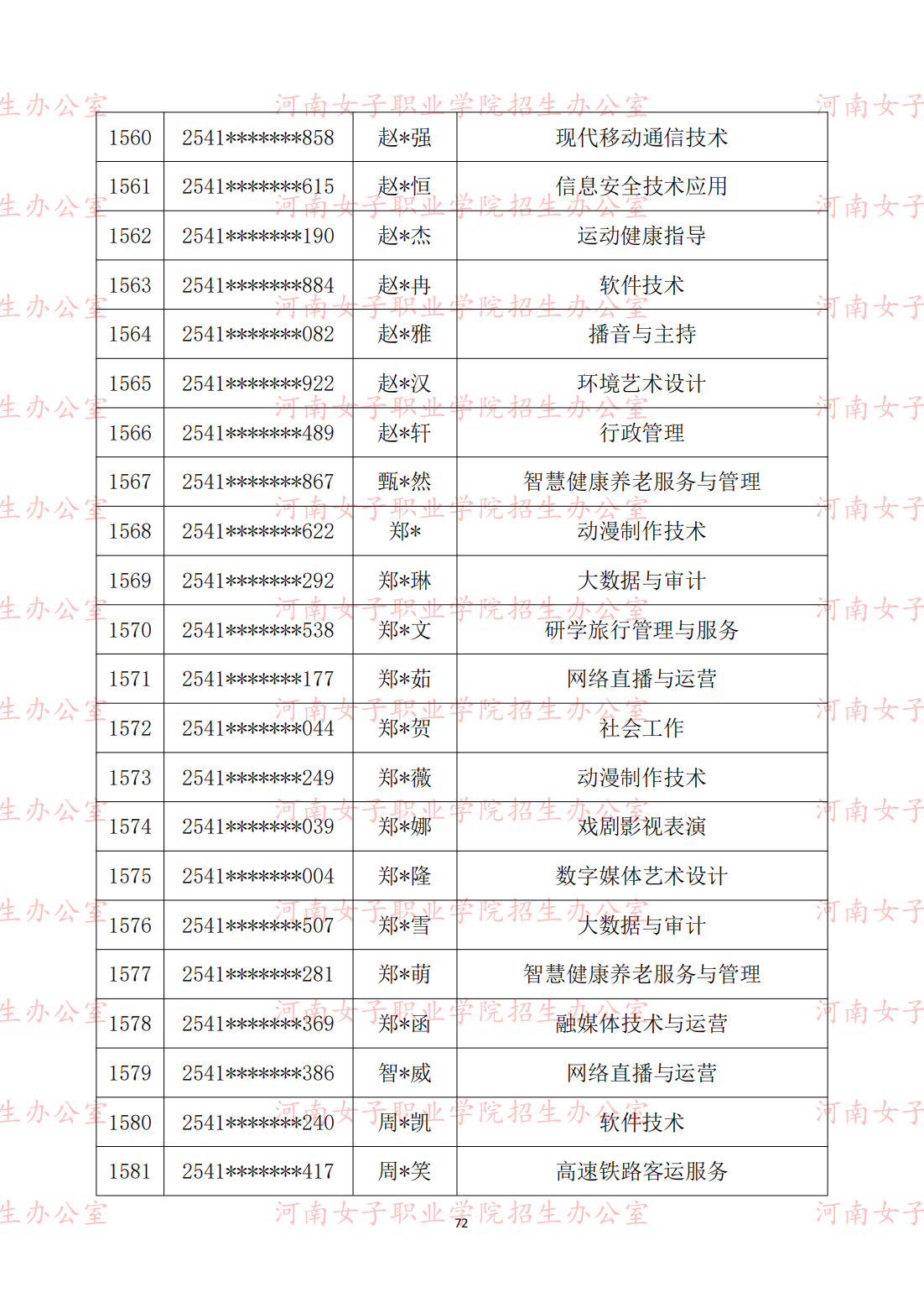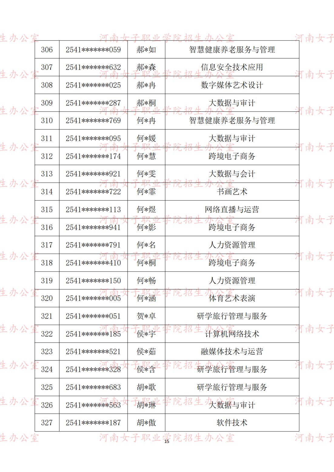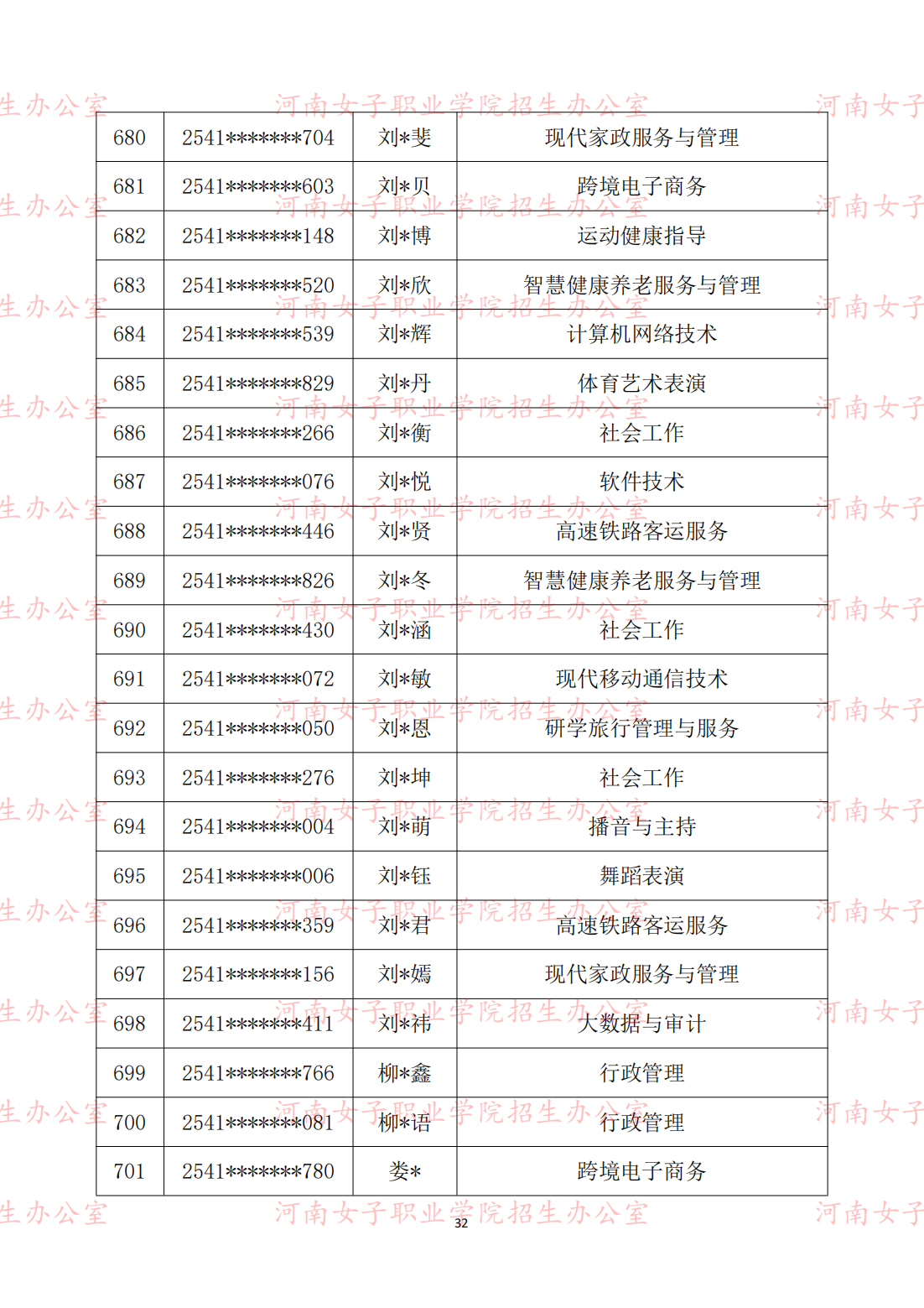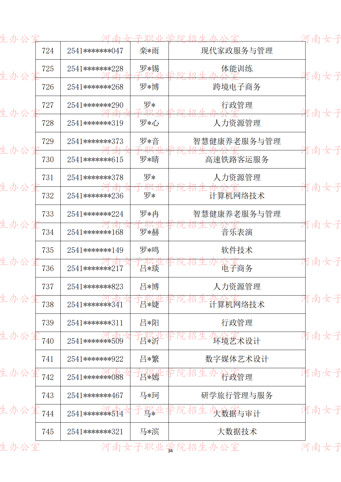 河南女子职业学院关于2025年高职单招拟录取名单的公示