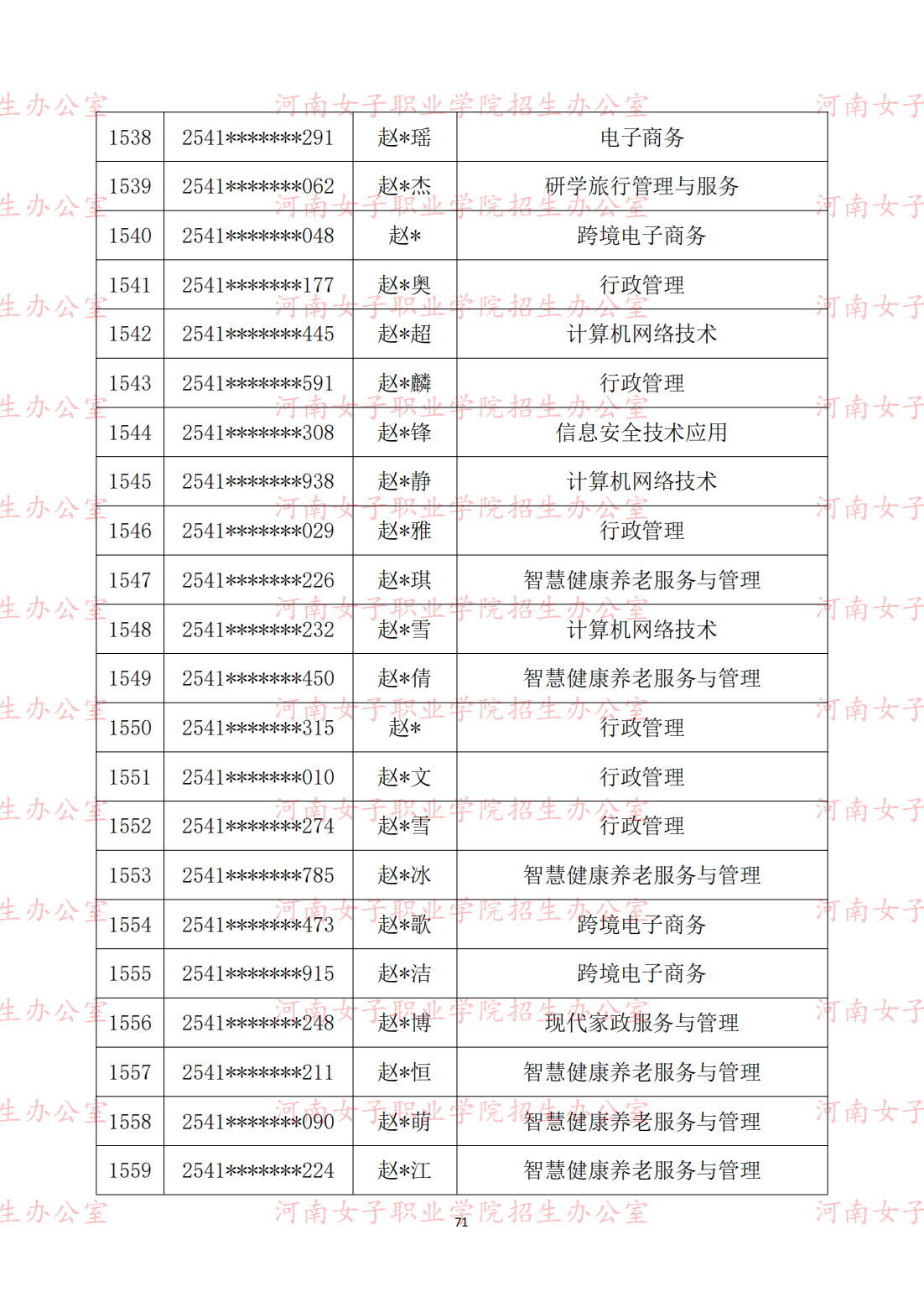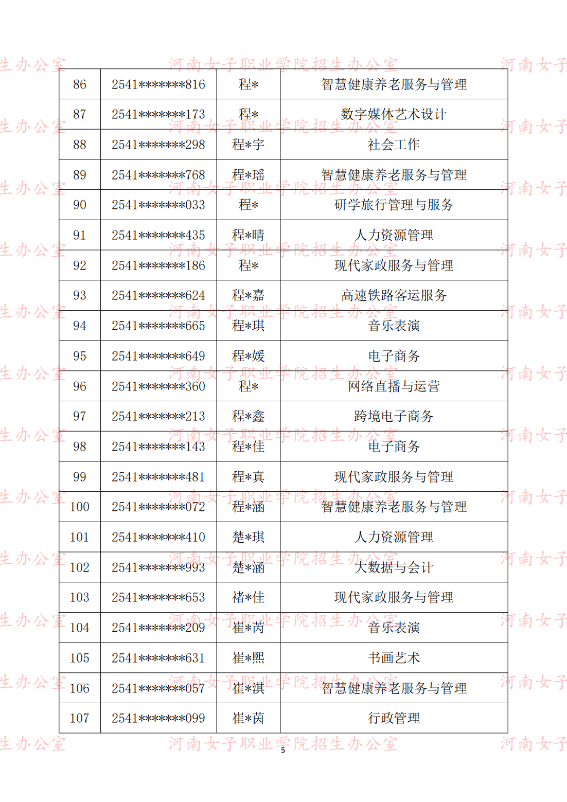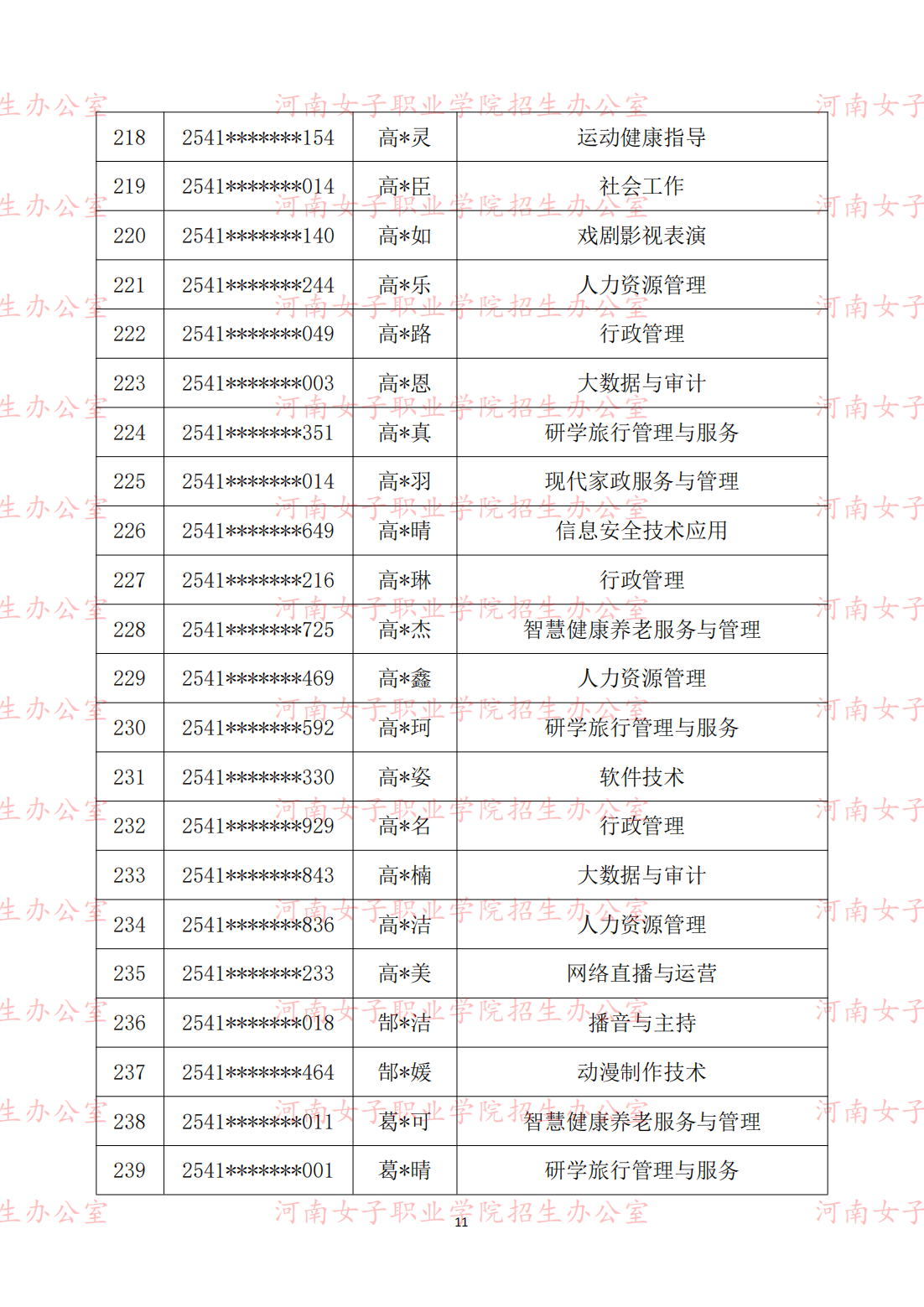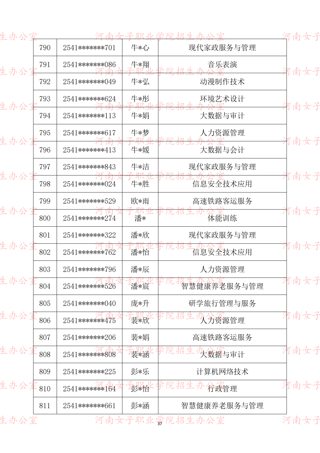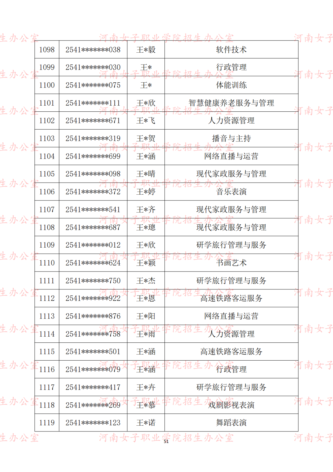 河南女子职业学院关于2025年高职单招拟录取名单的公示