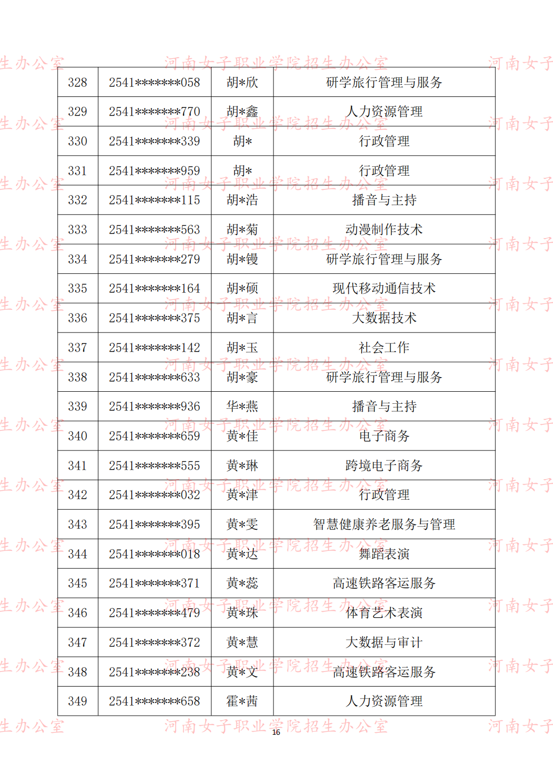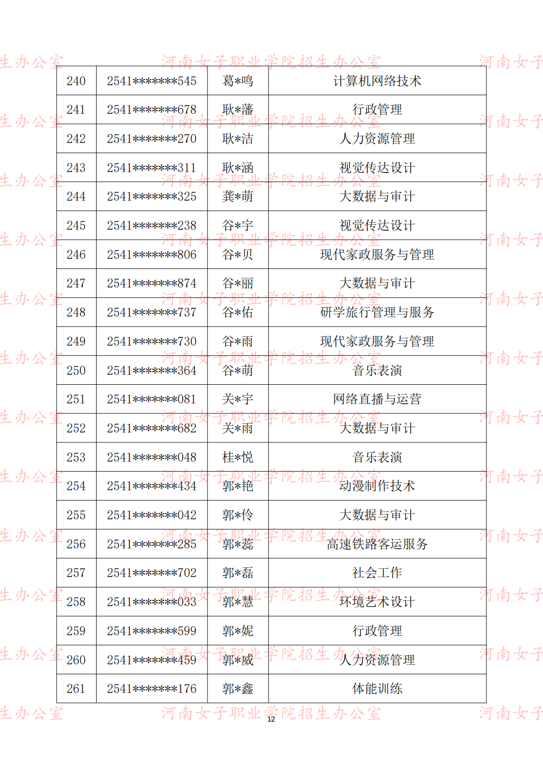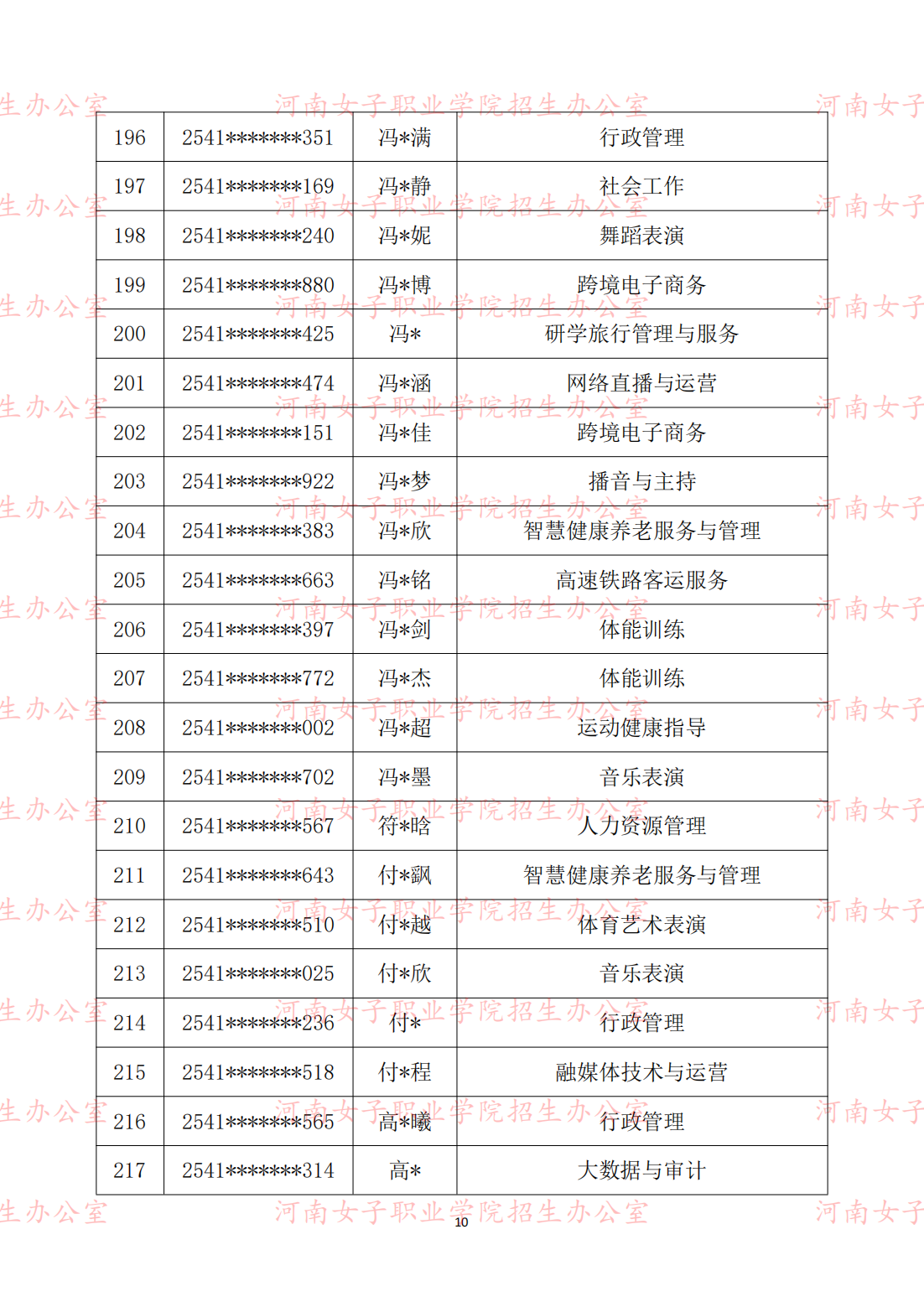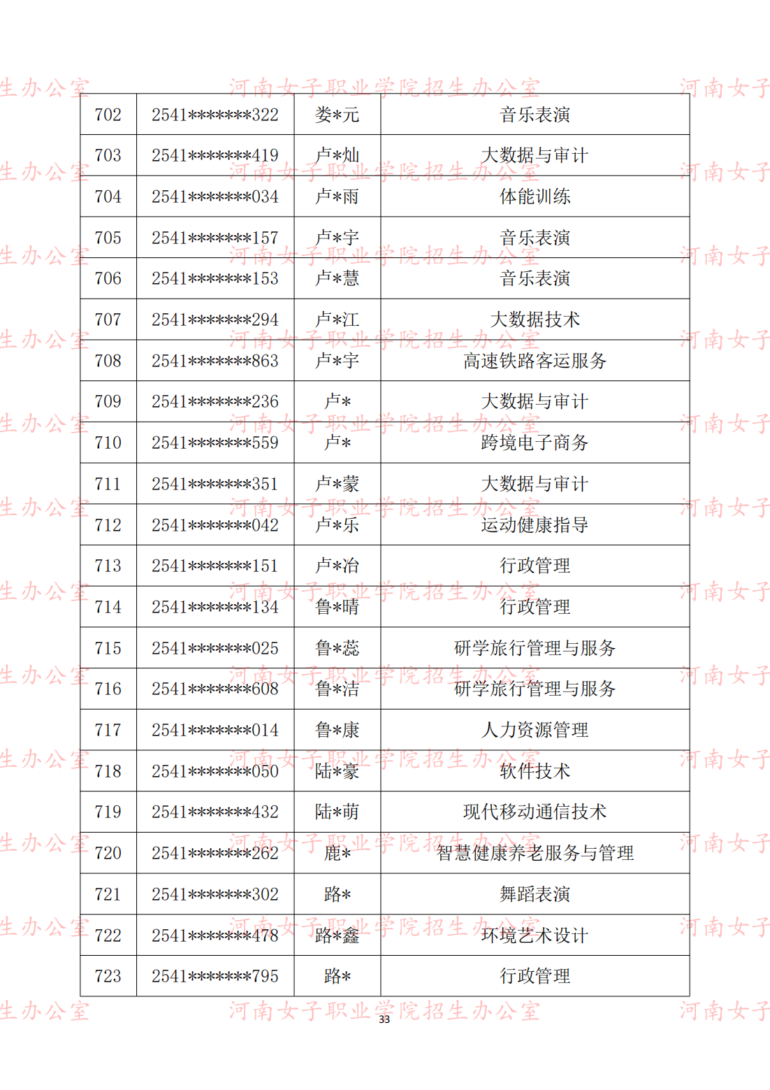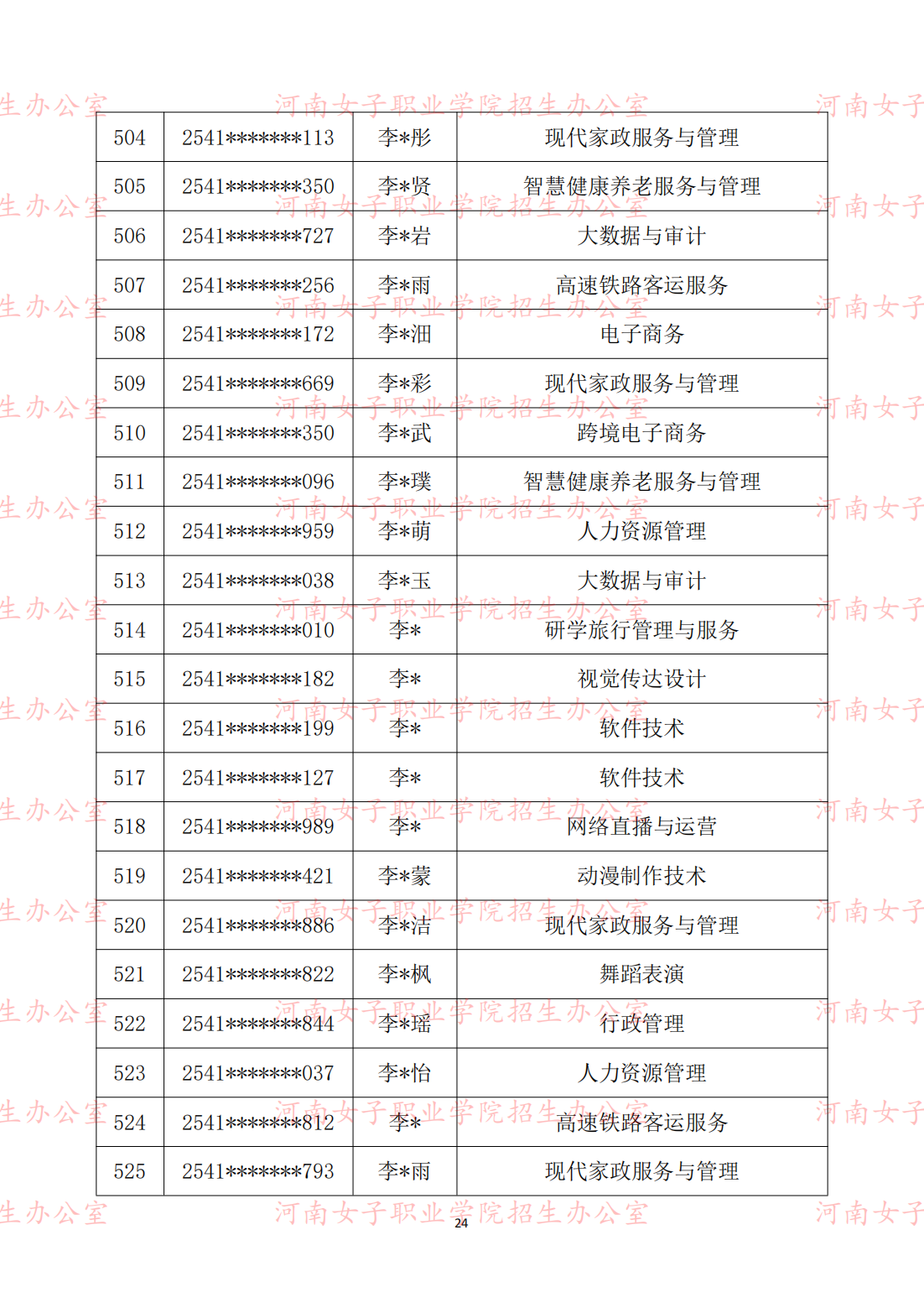 河南女子职业学院关于2025年高职单招拟录取名单的公示