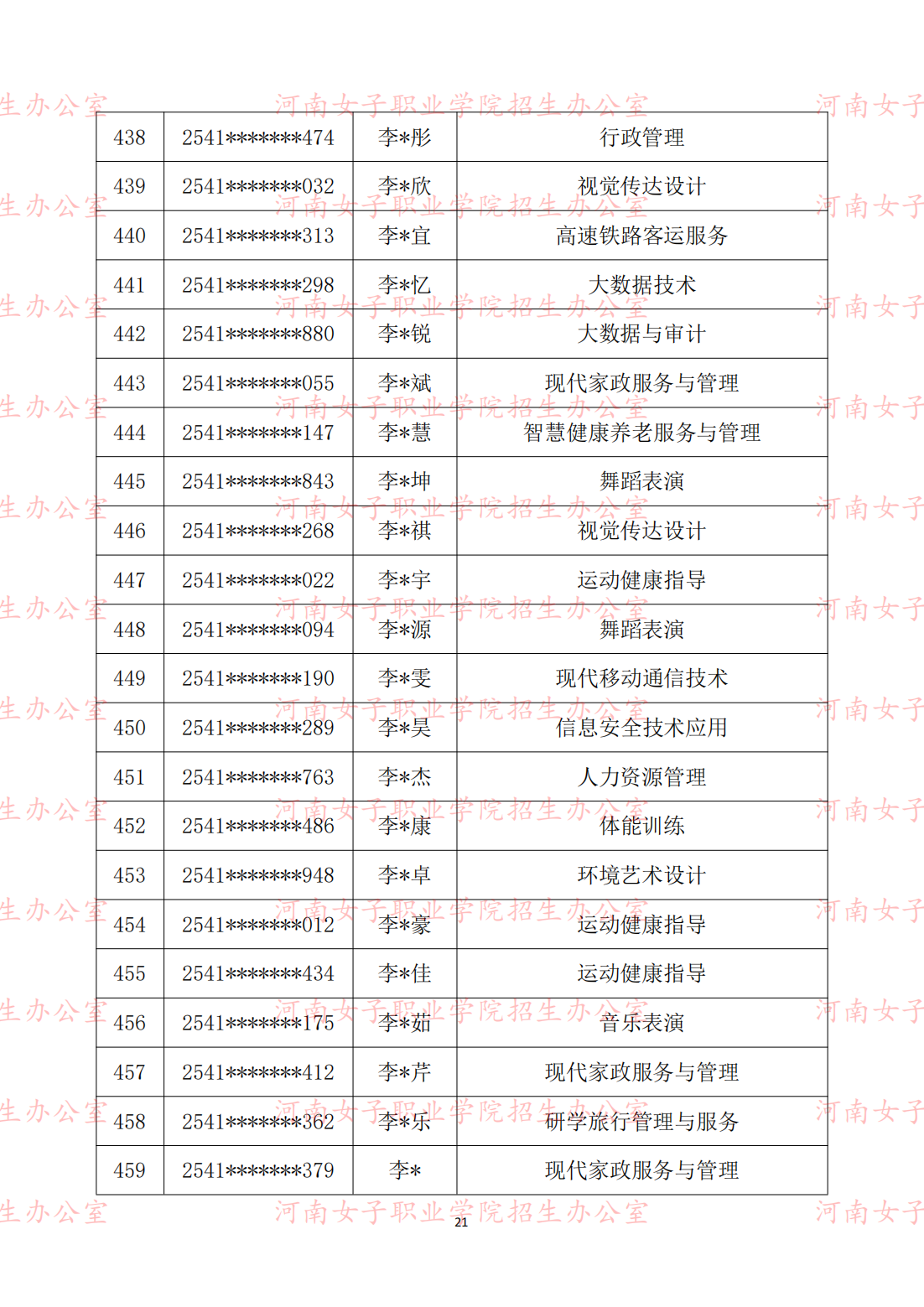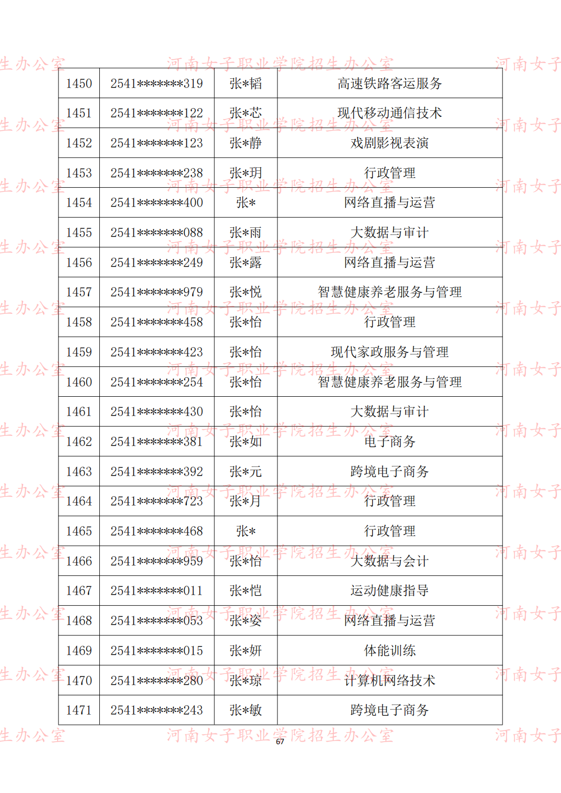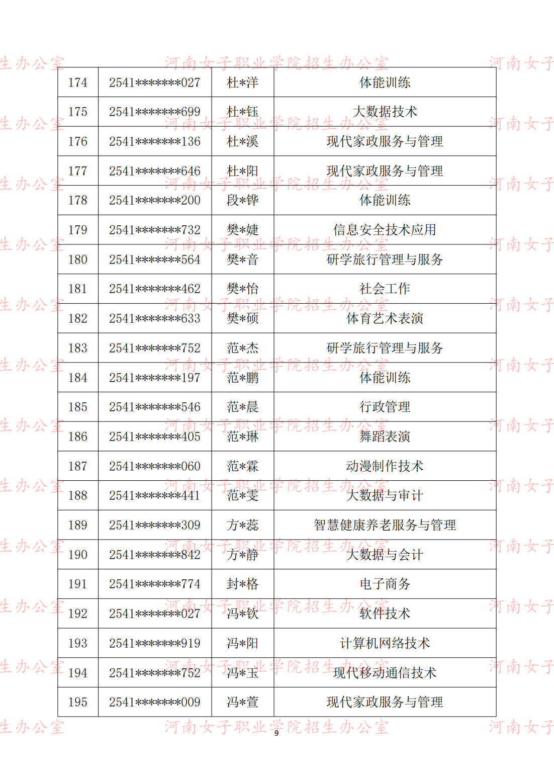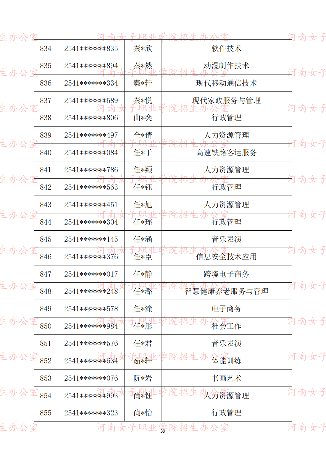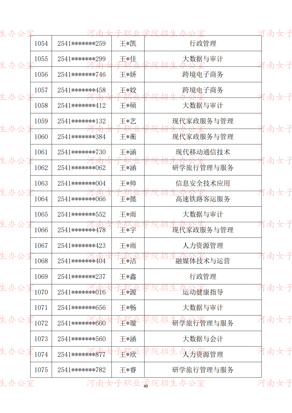 河南女子职业学院关于2025年高职单招拟录取名单的公示