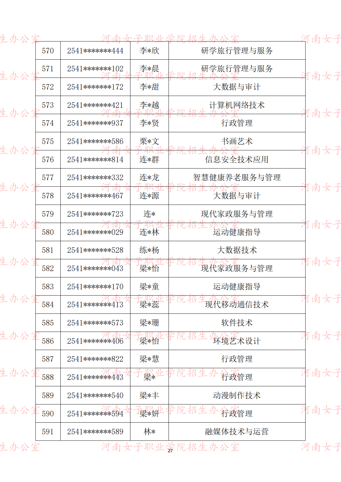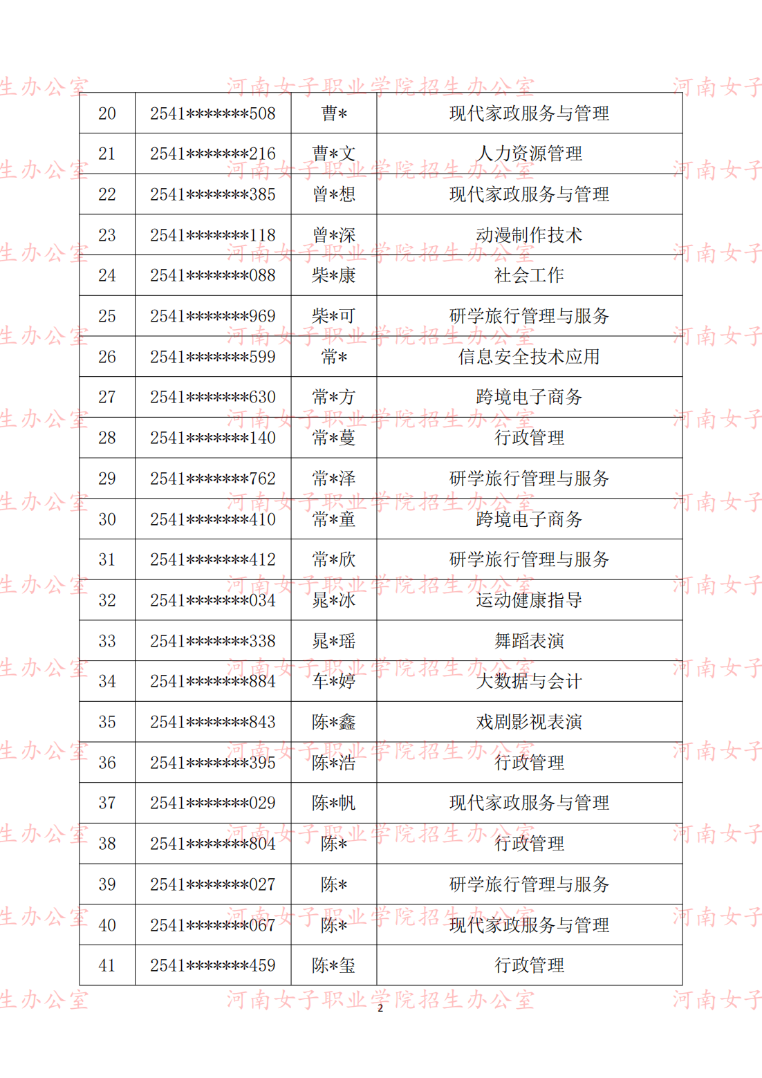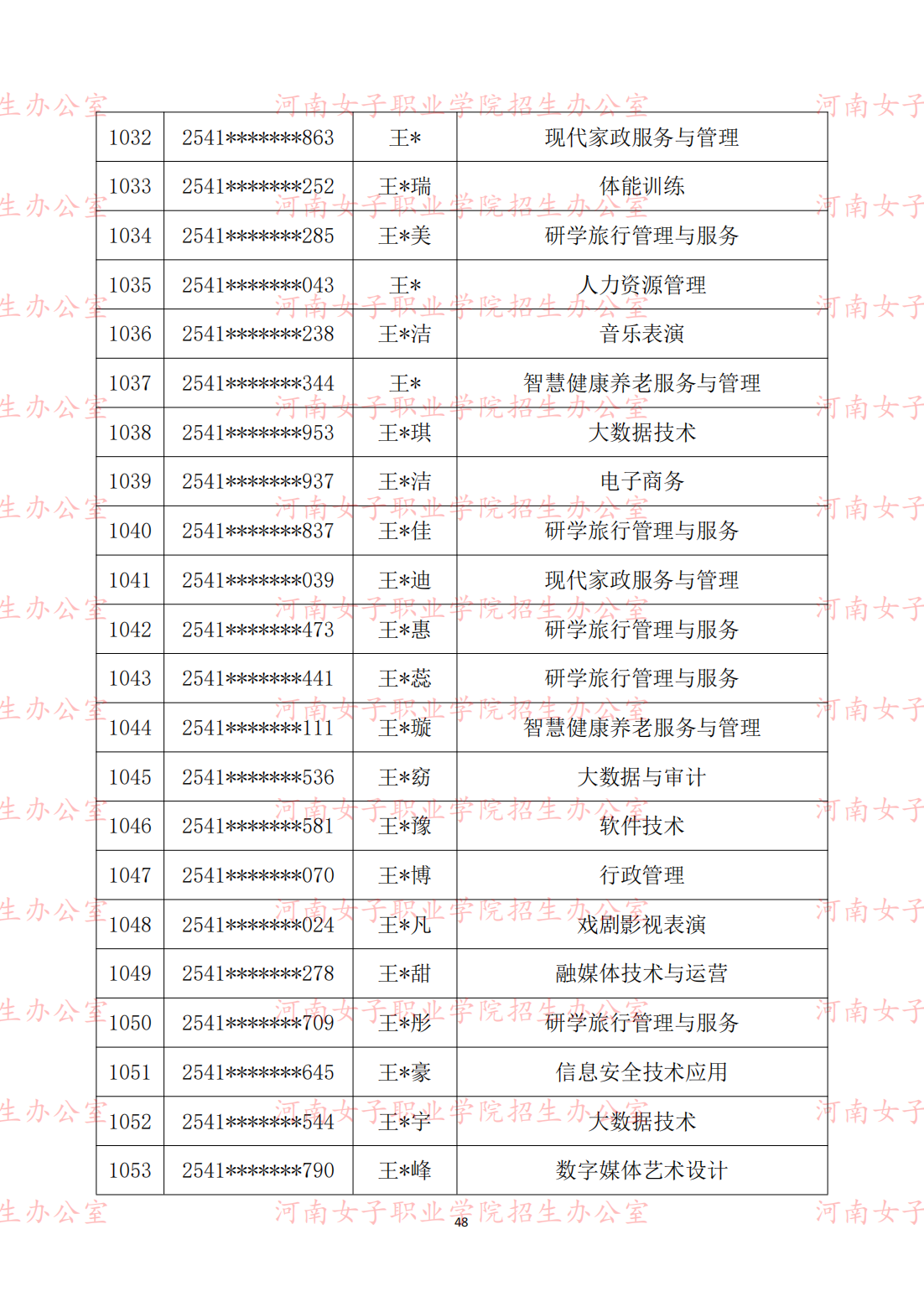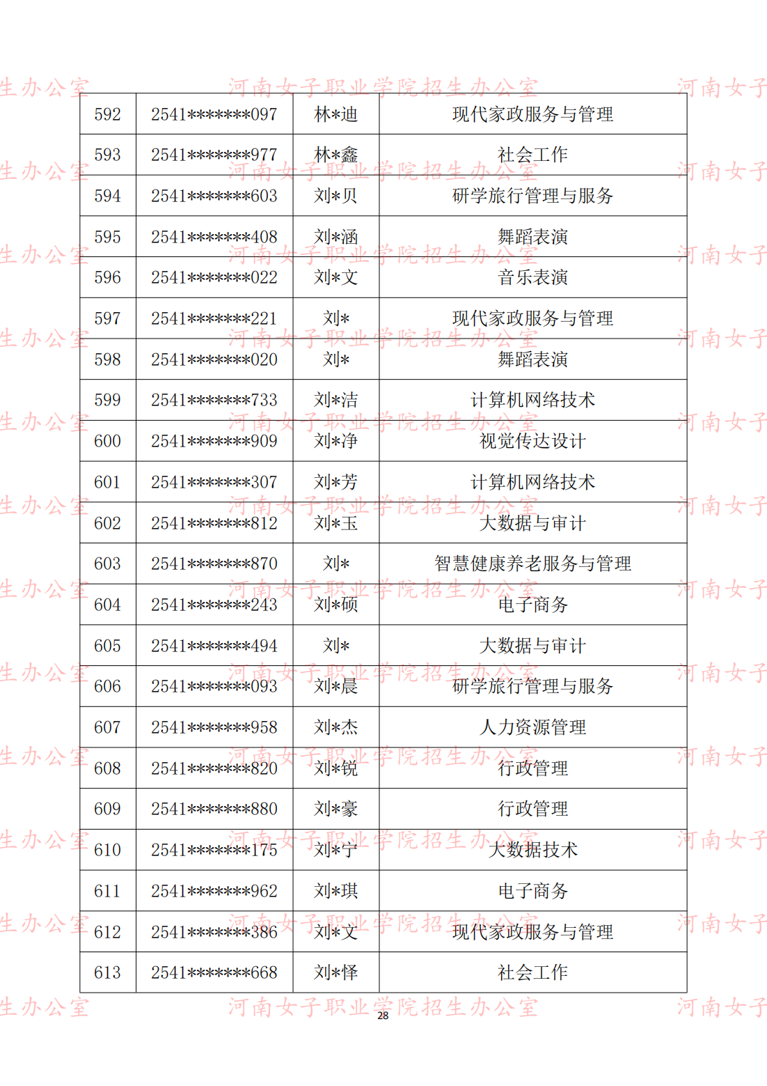河南女子职业学院关于2025年高职单招拟录取名单的公示