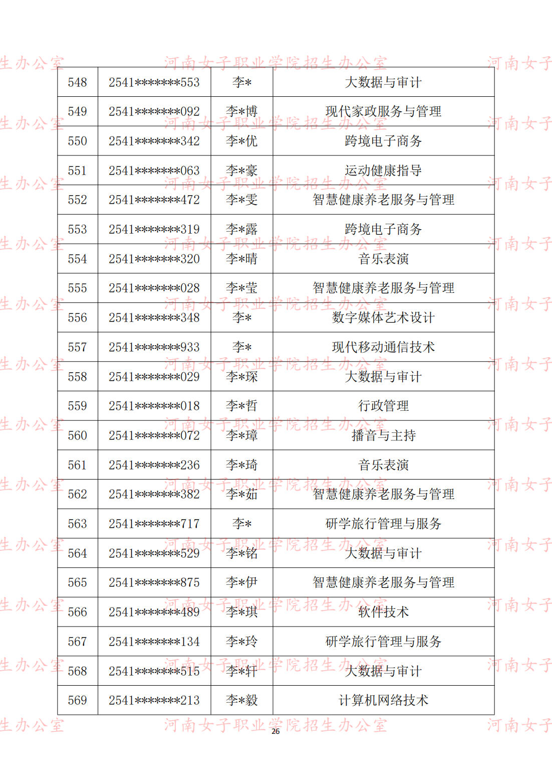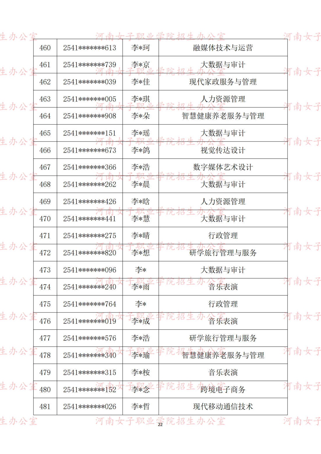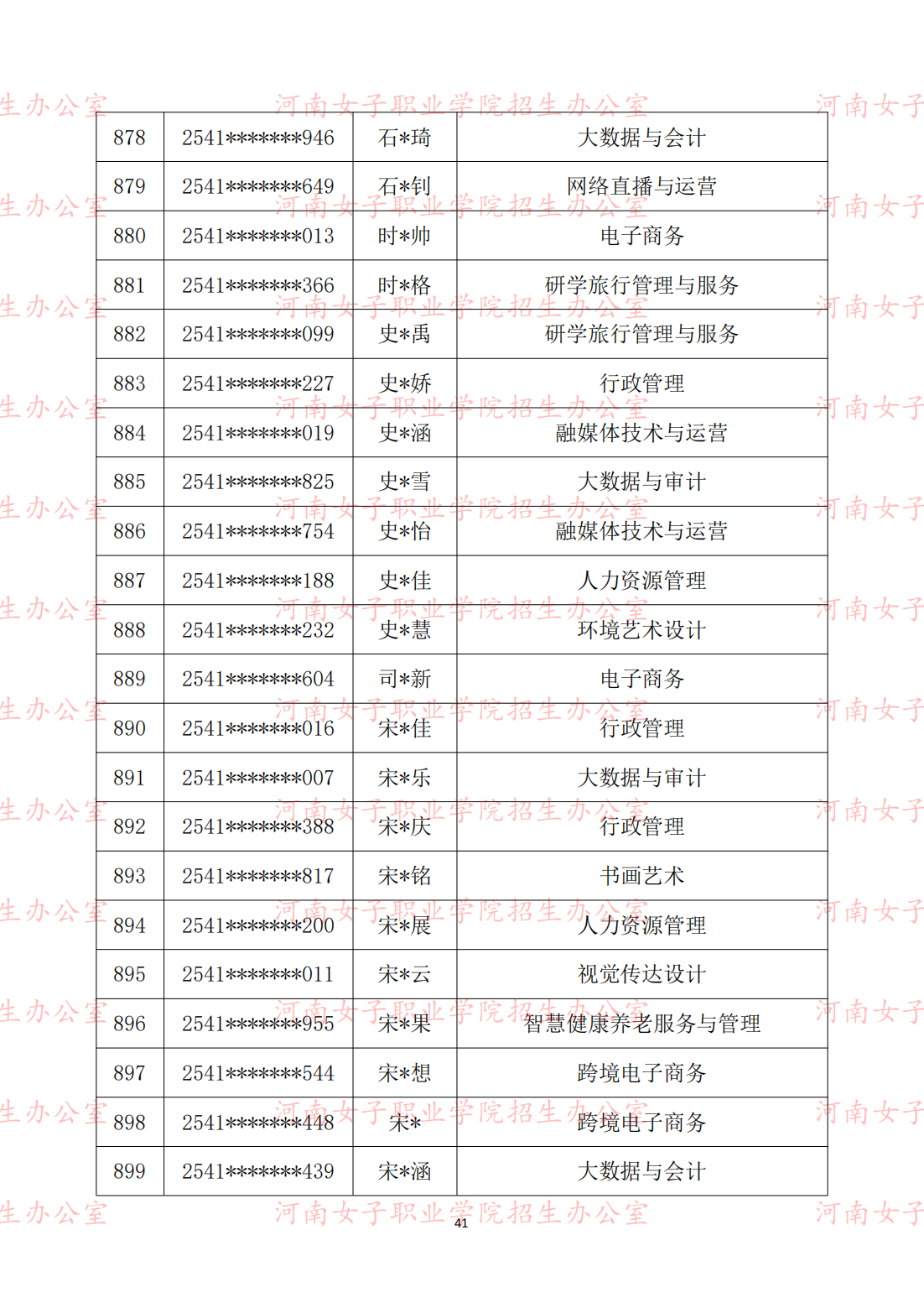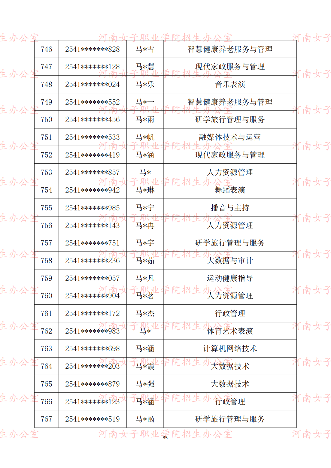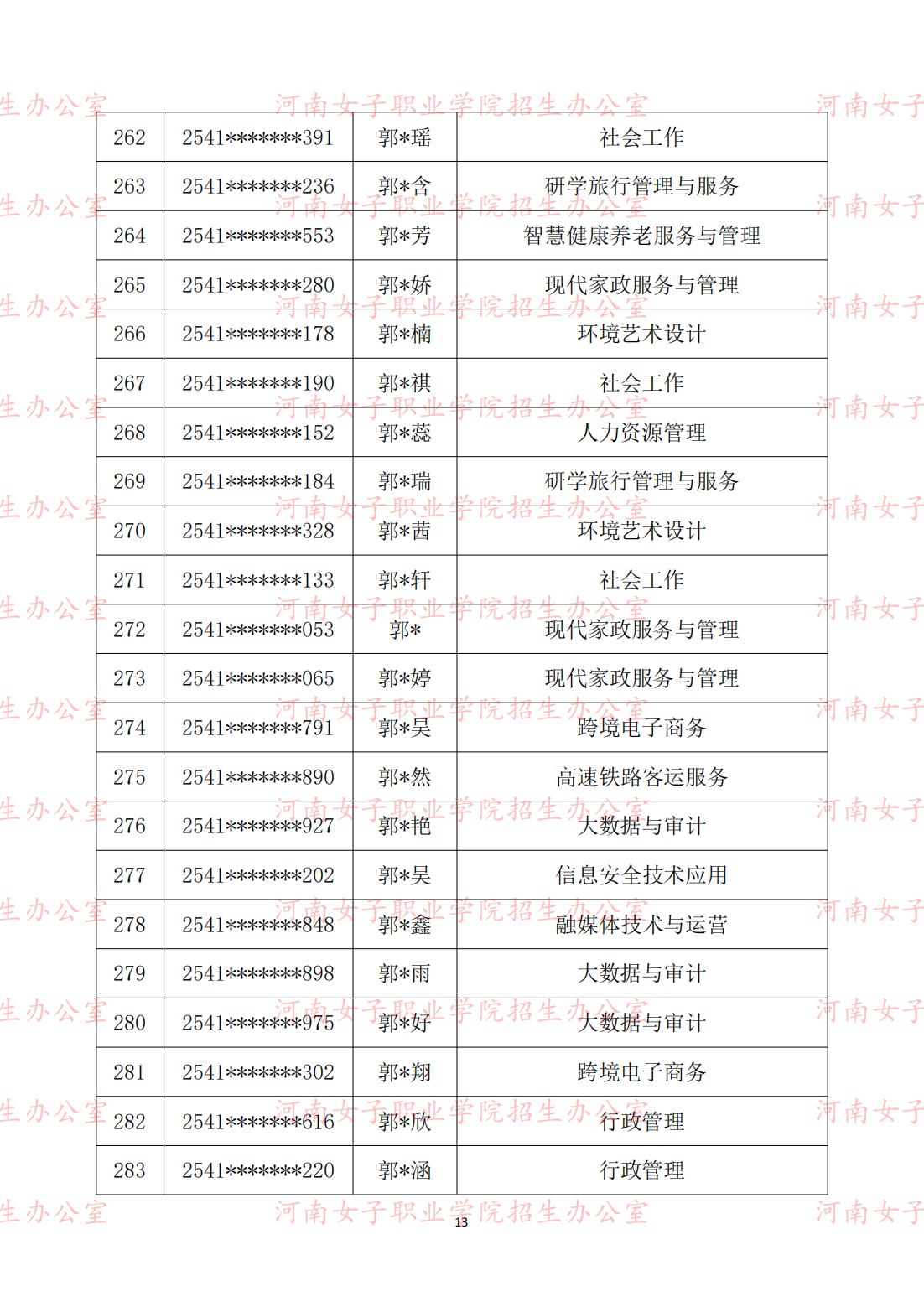 河南女子职业学院关于2025年高职单招拟录取名单的公示