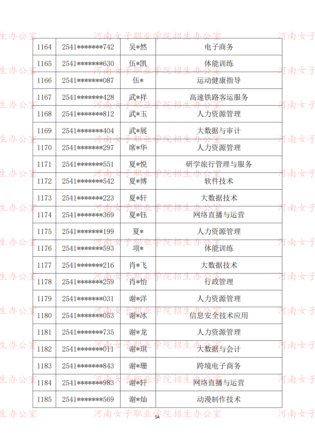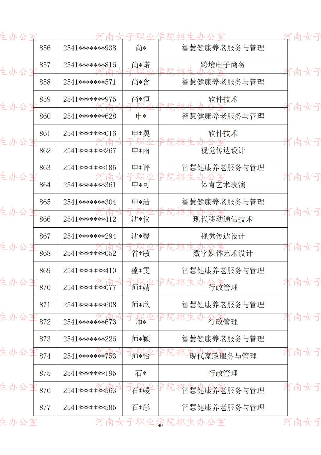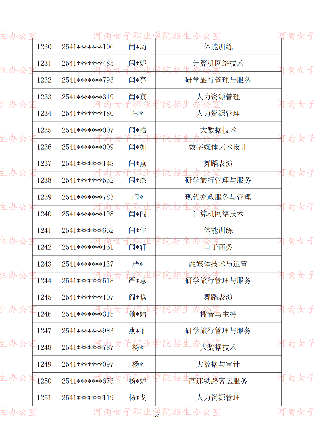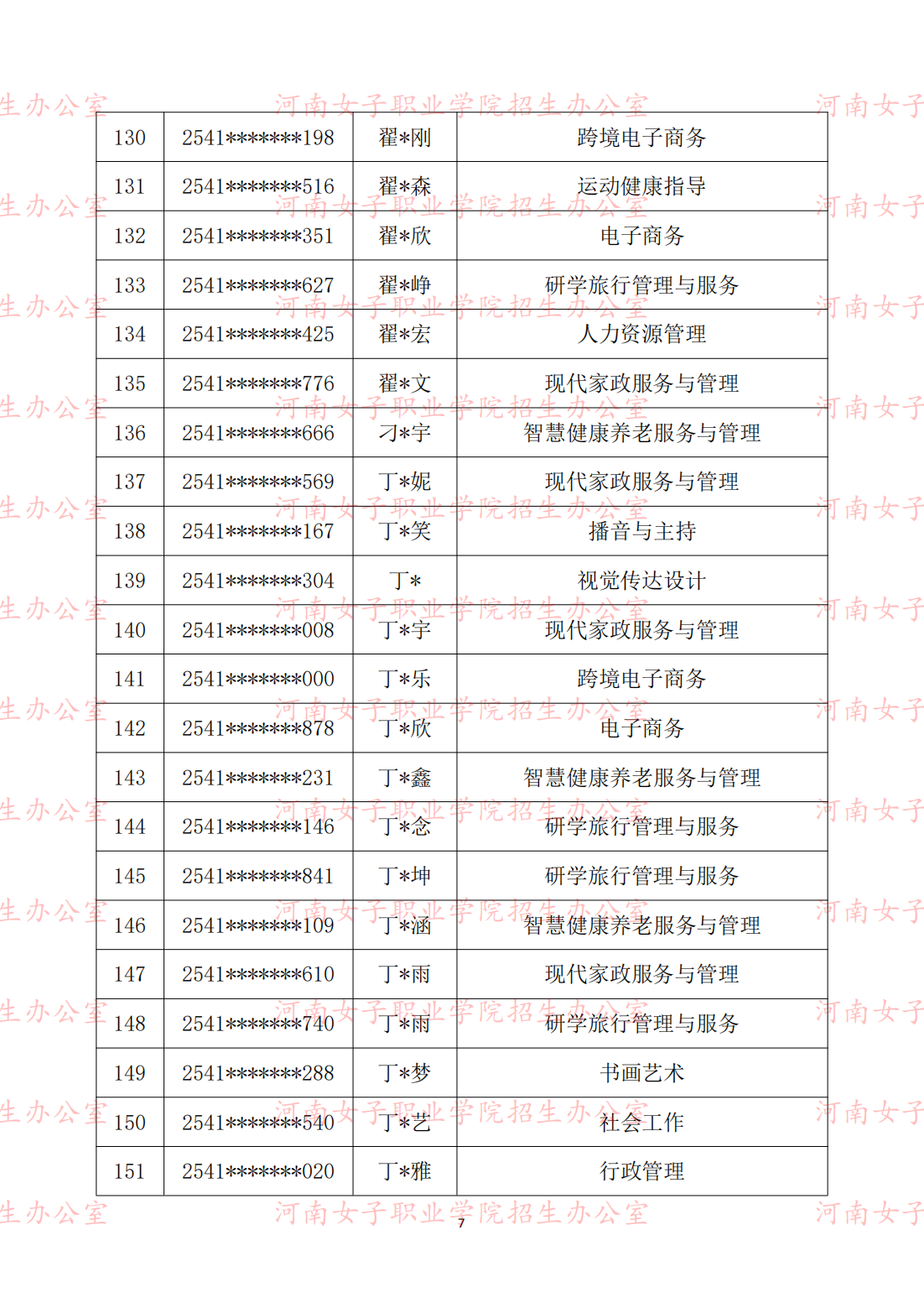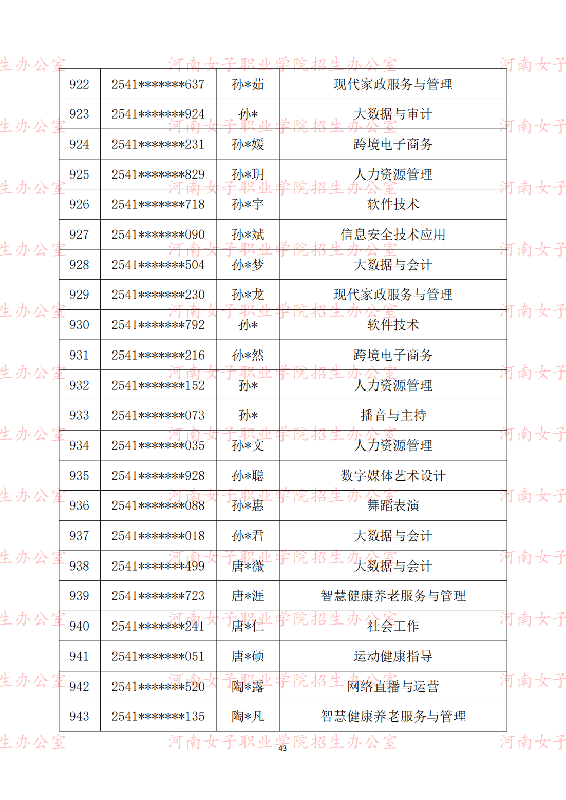 河南女子职业学院关于2025年高职单招拟录取名单的公示