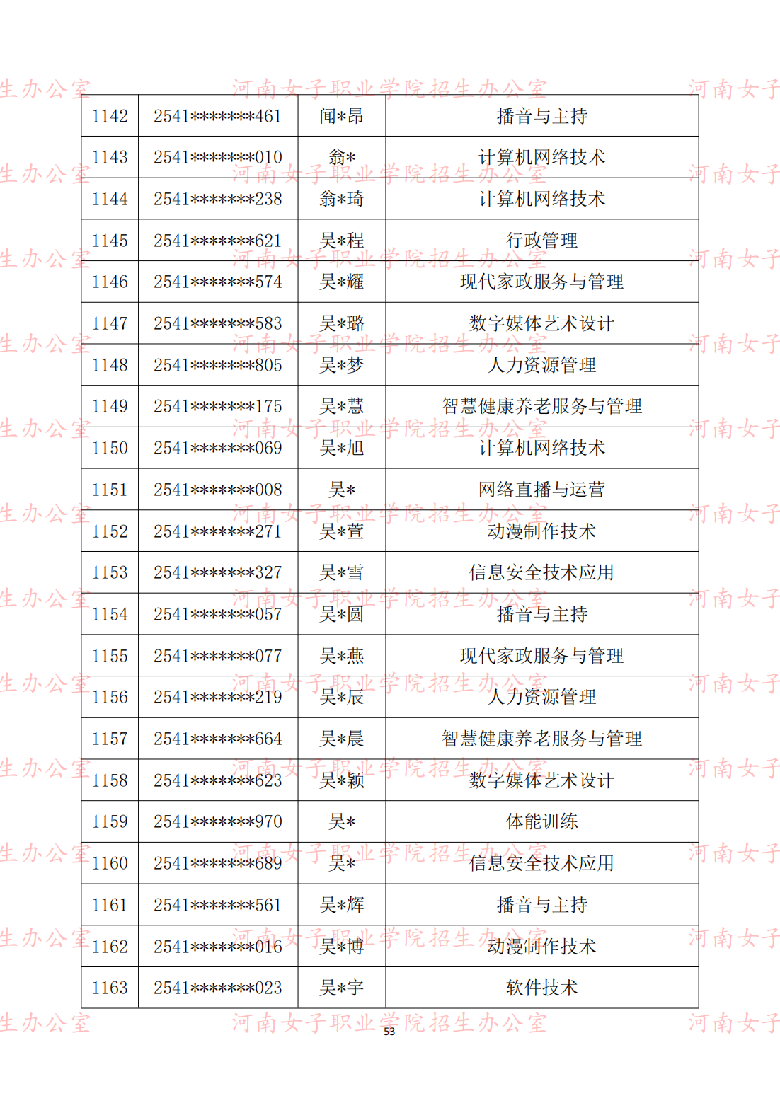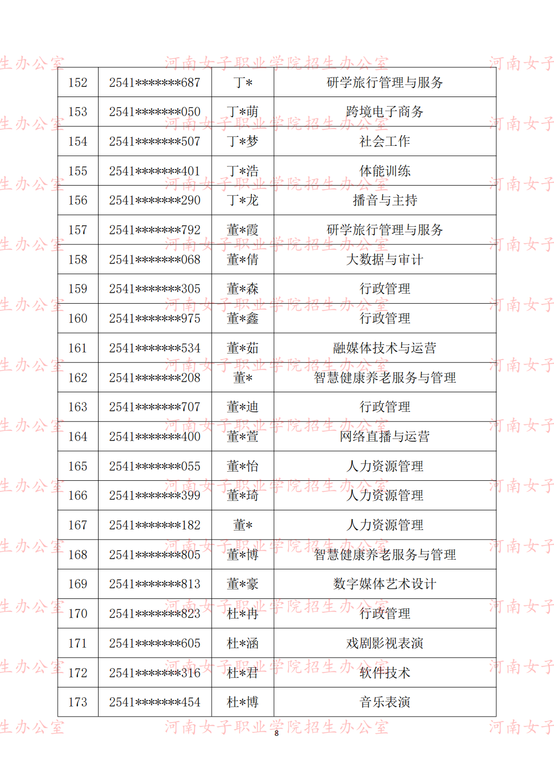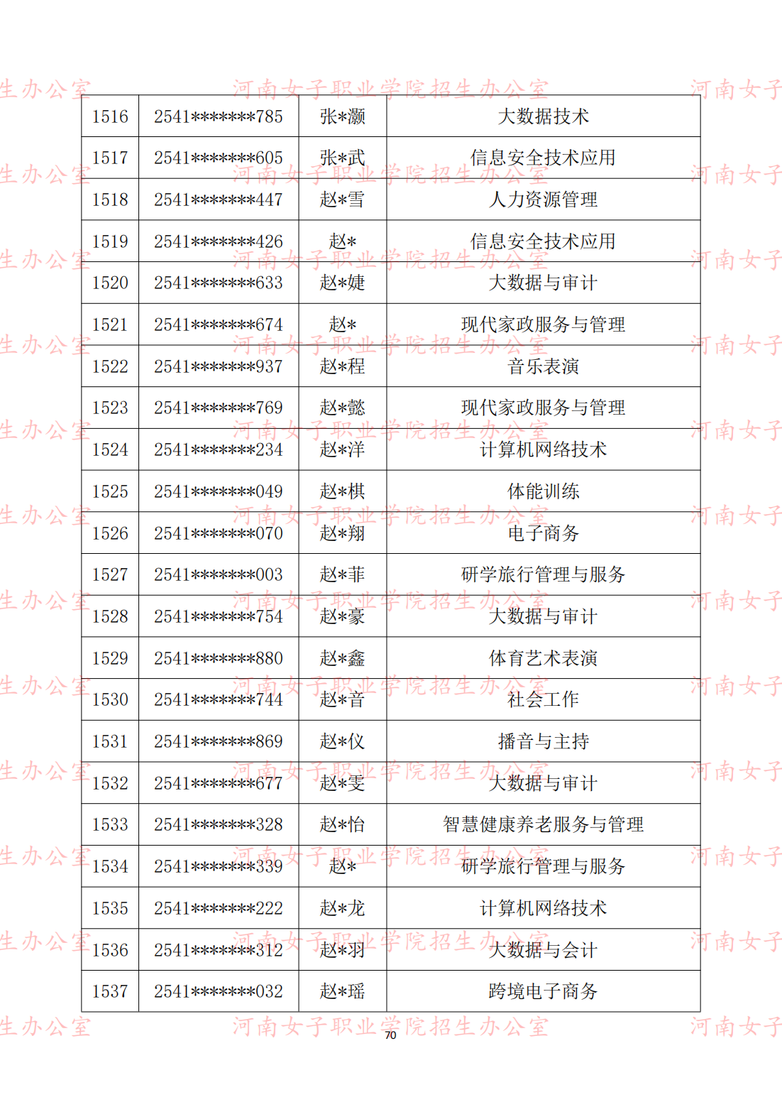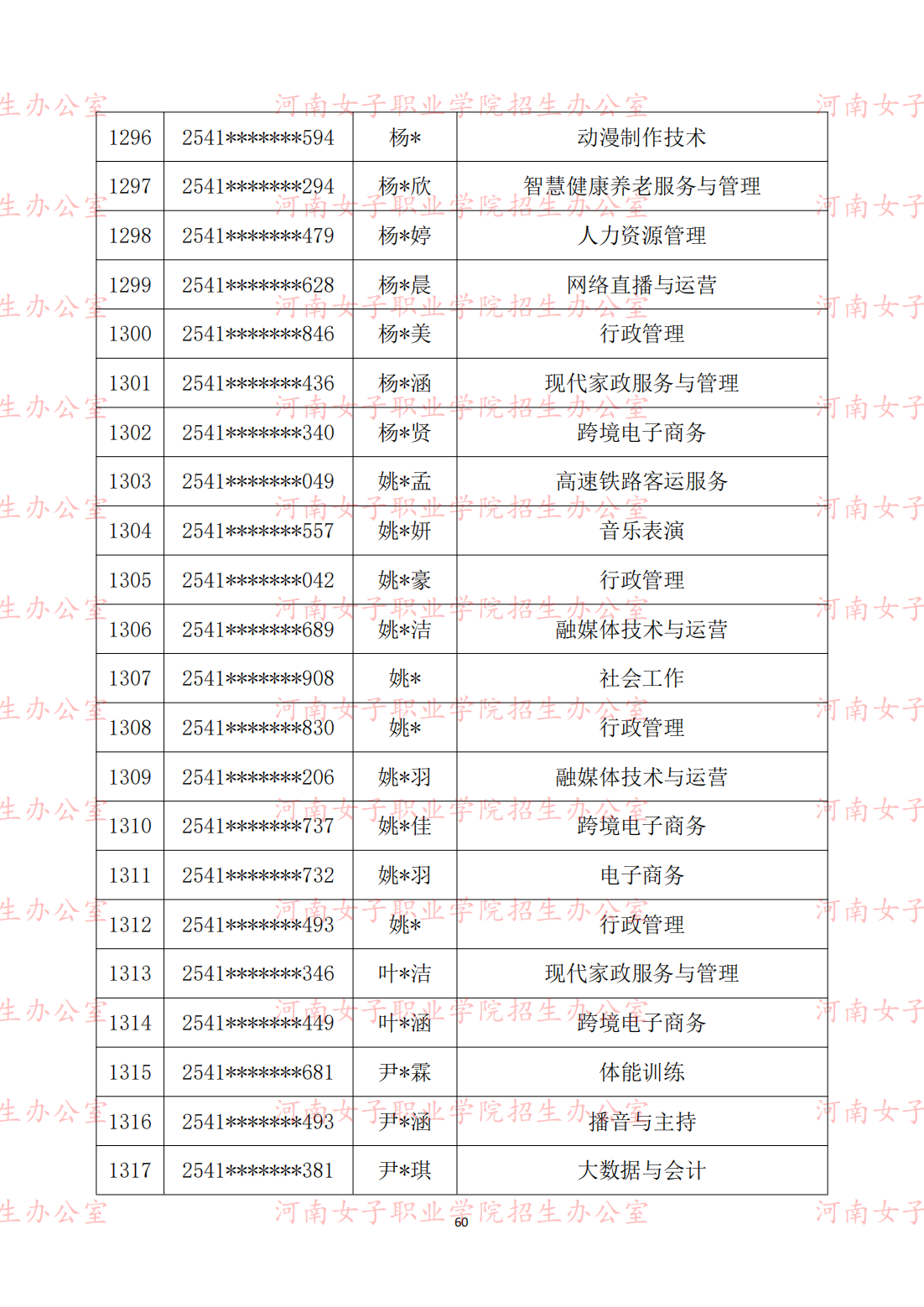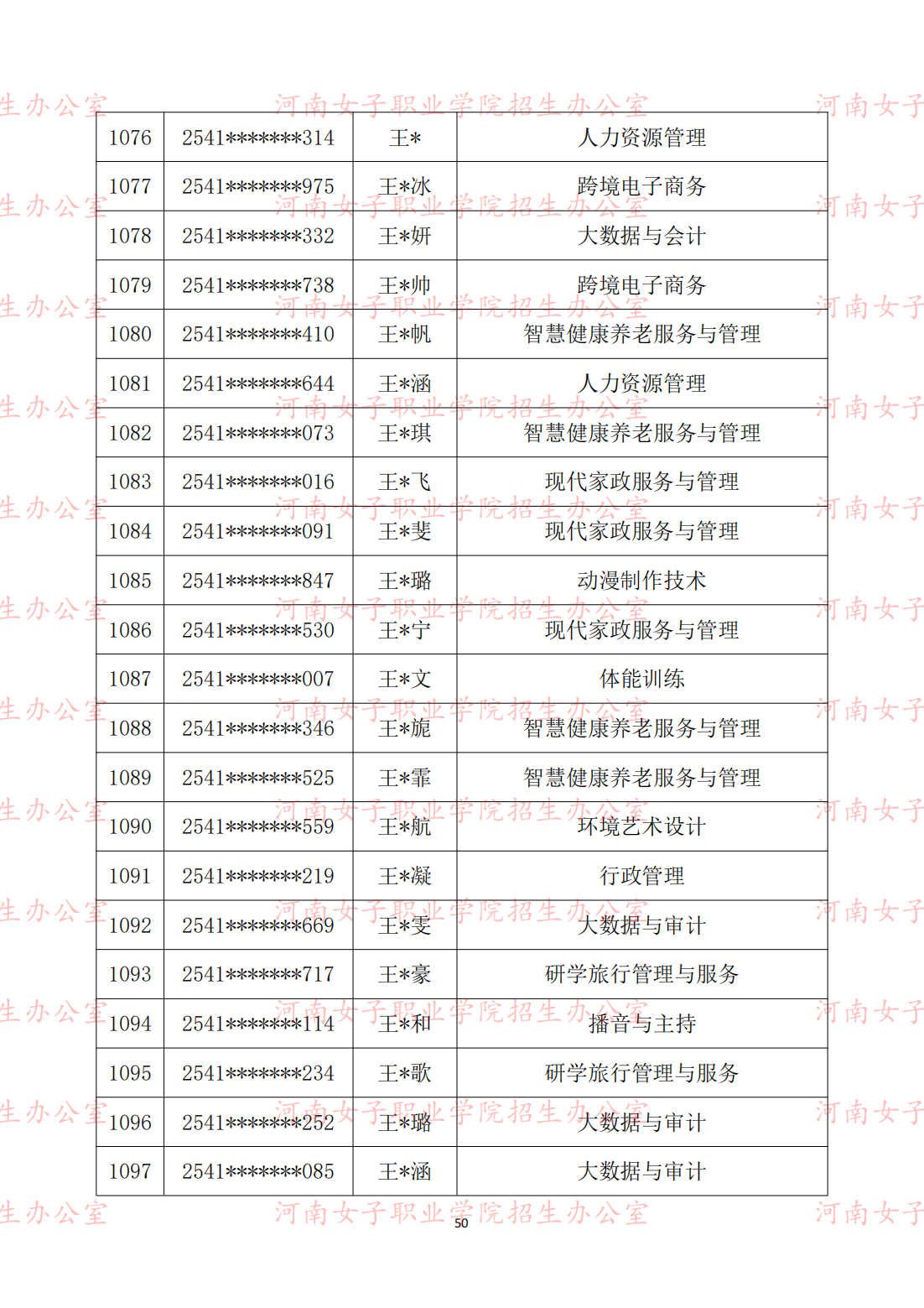 河南女子职业学院关于2025年高职单招拟录取名单的公示