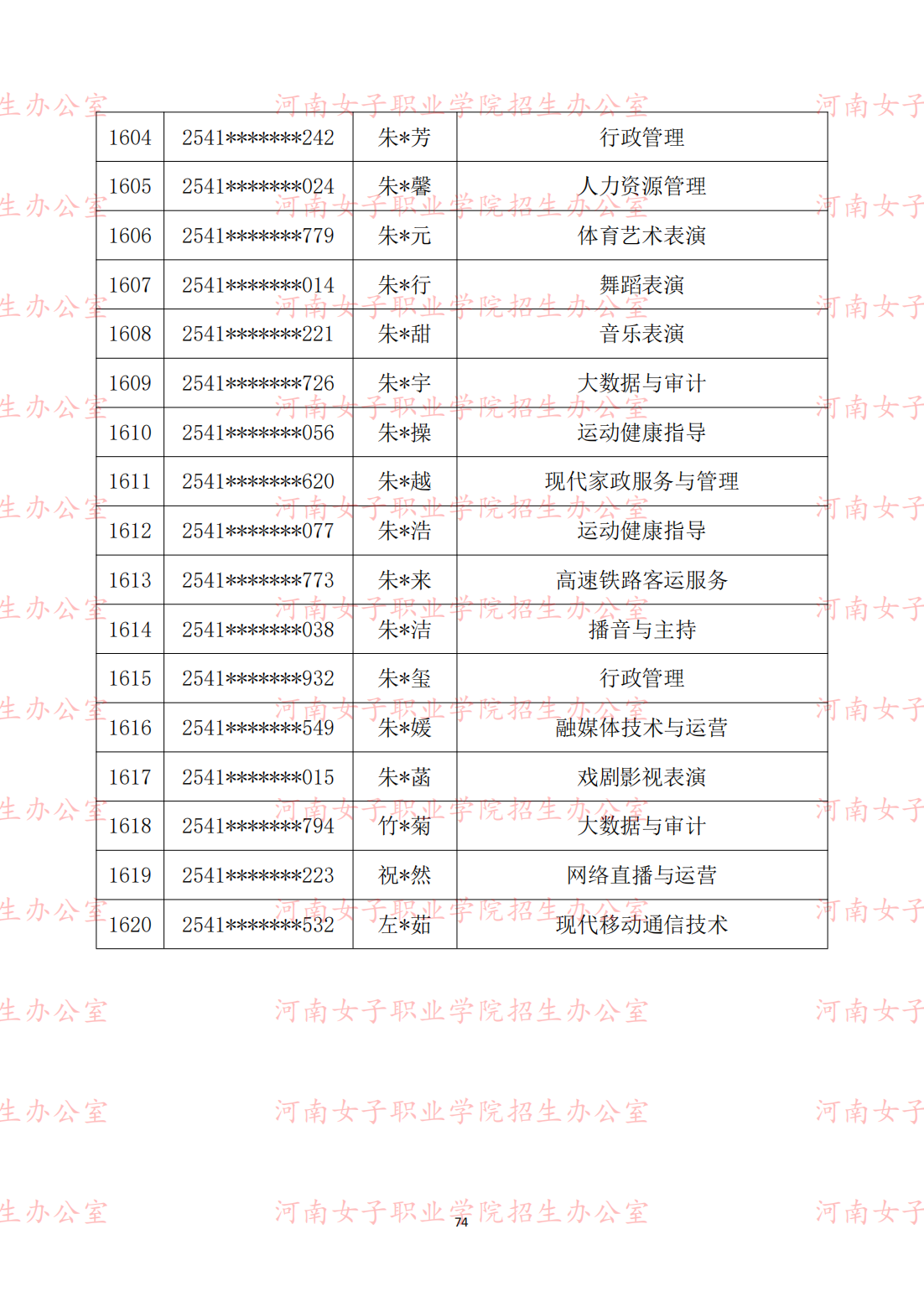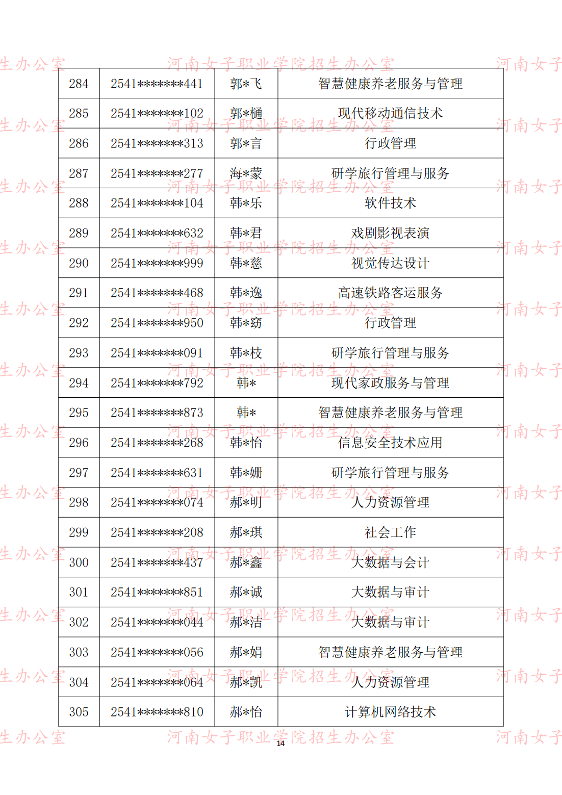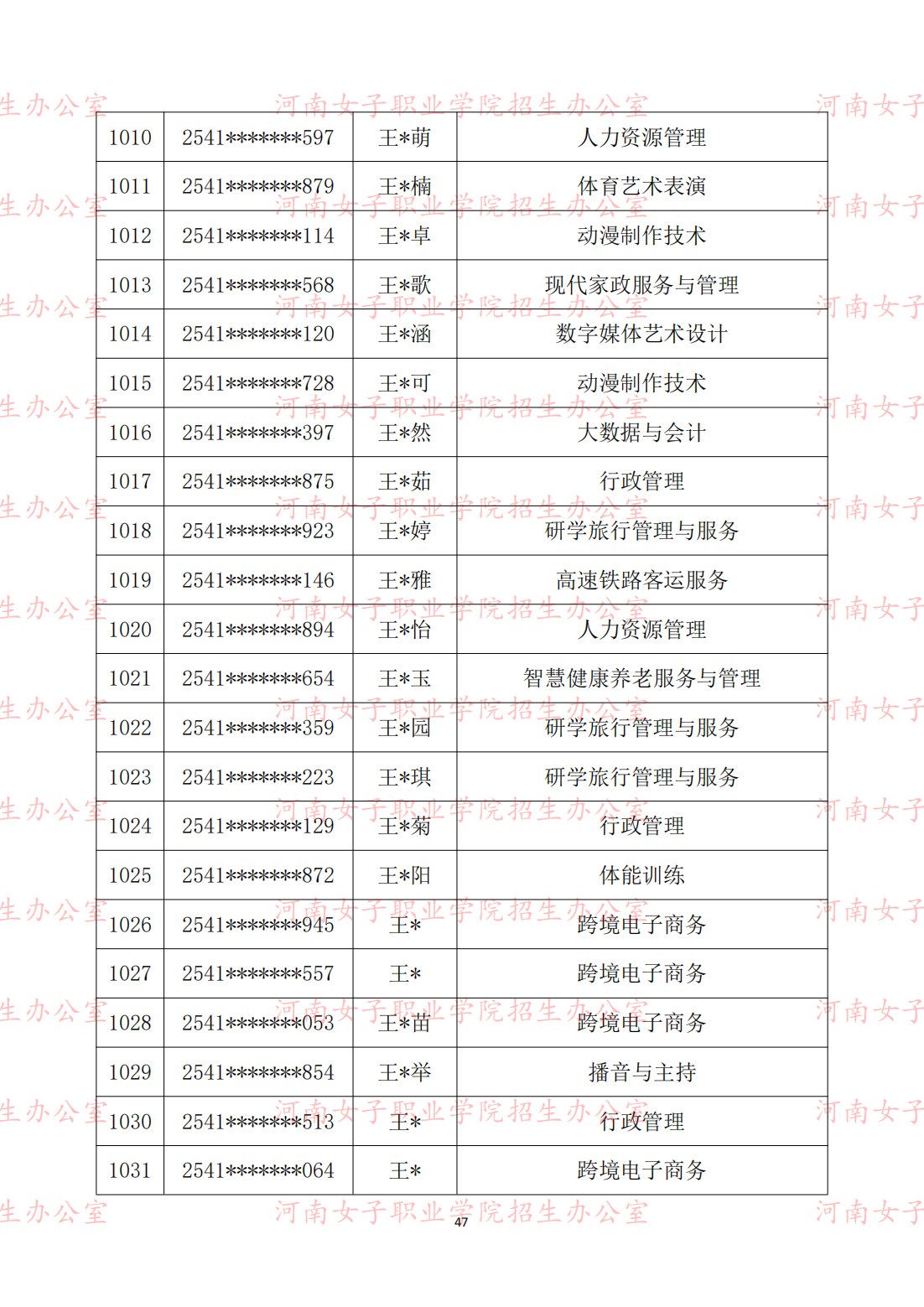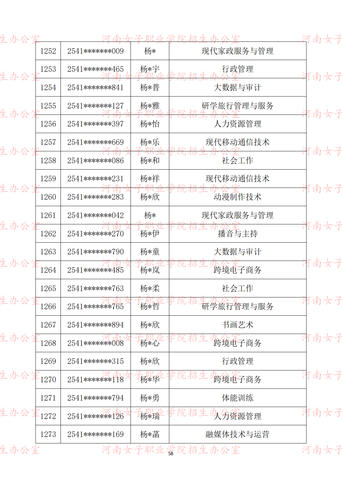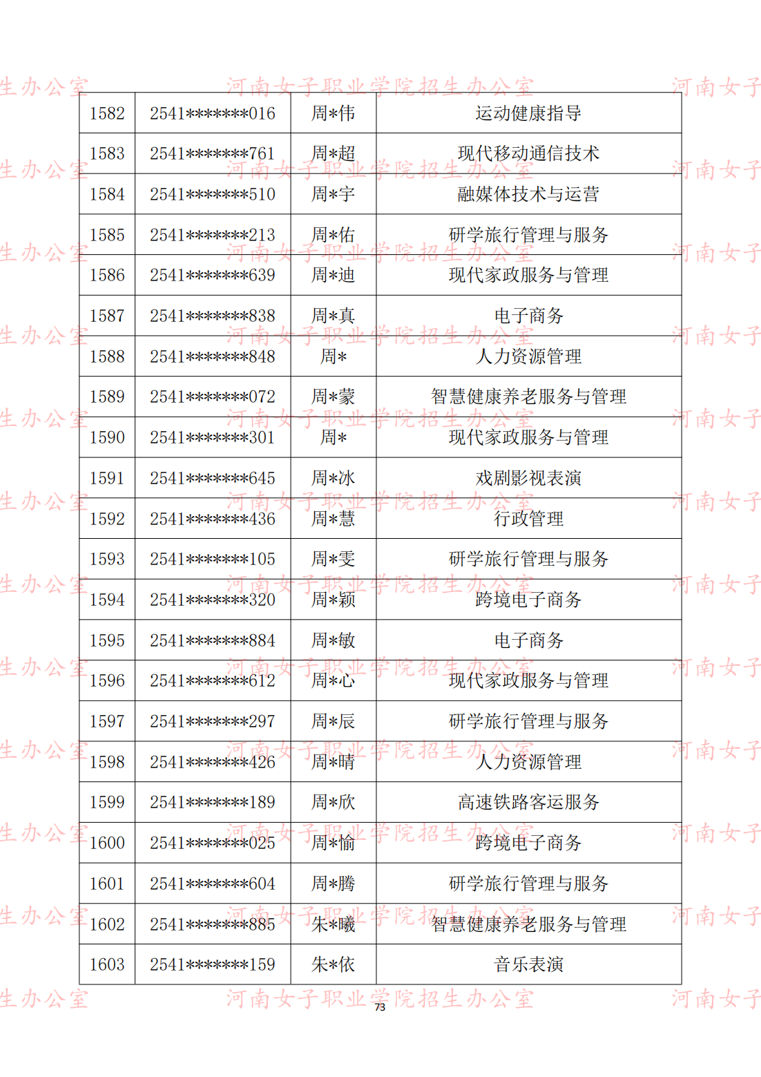 河南女子职业学院关于2025年高职单招拟录取名单的公示