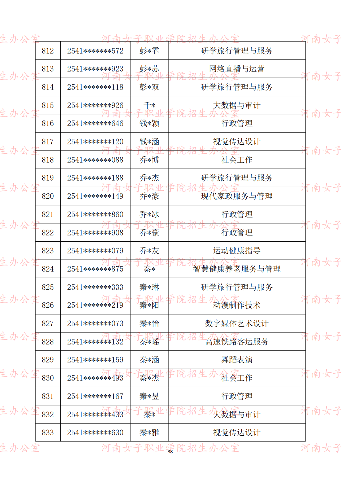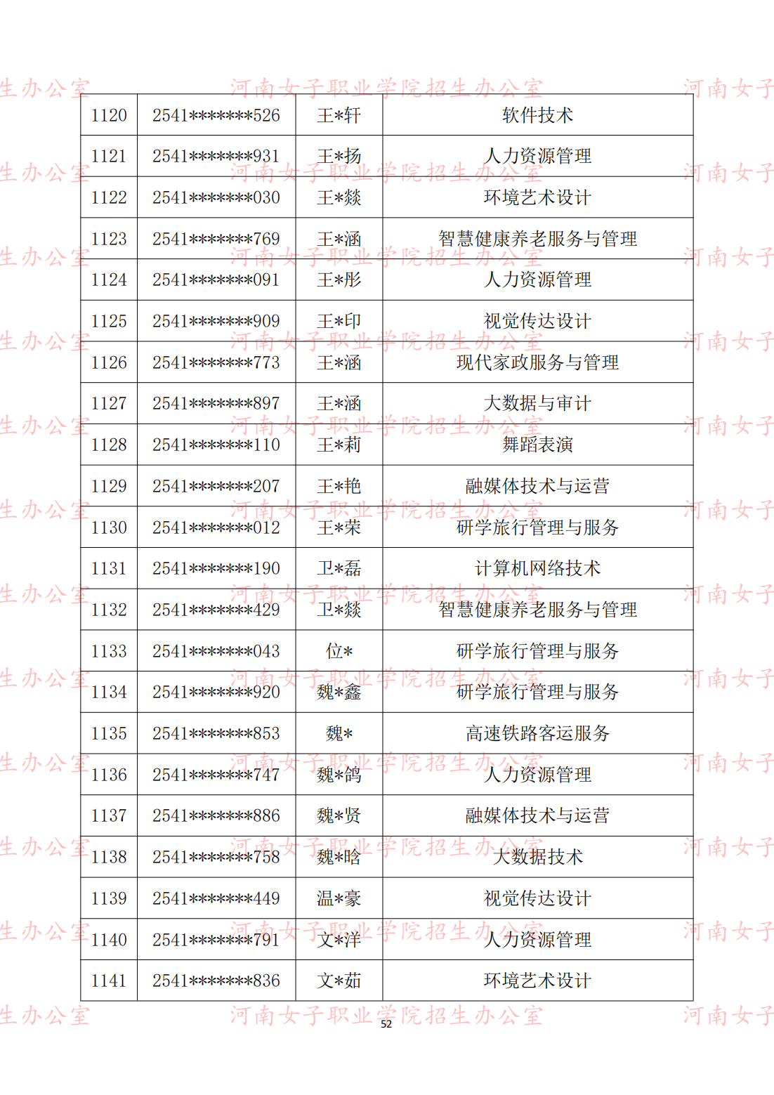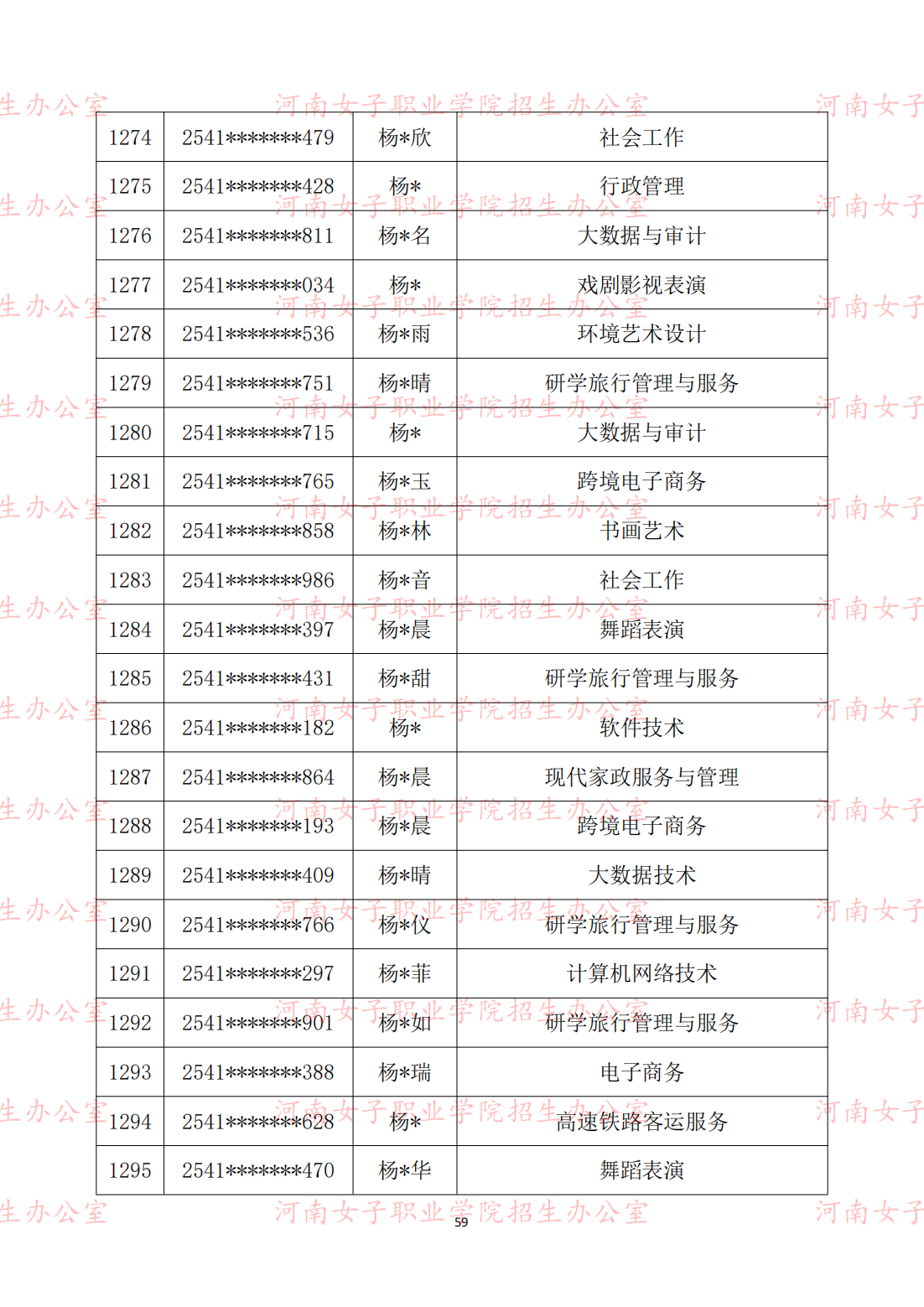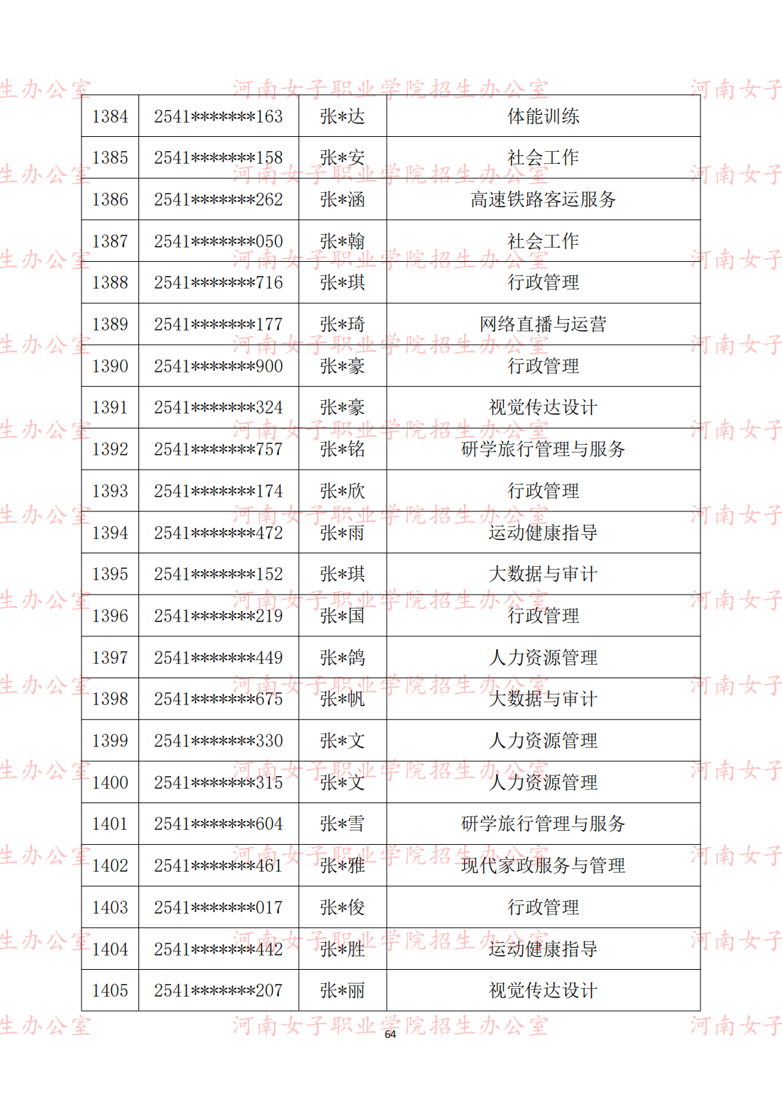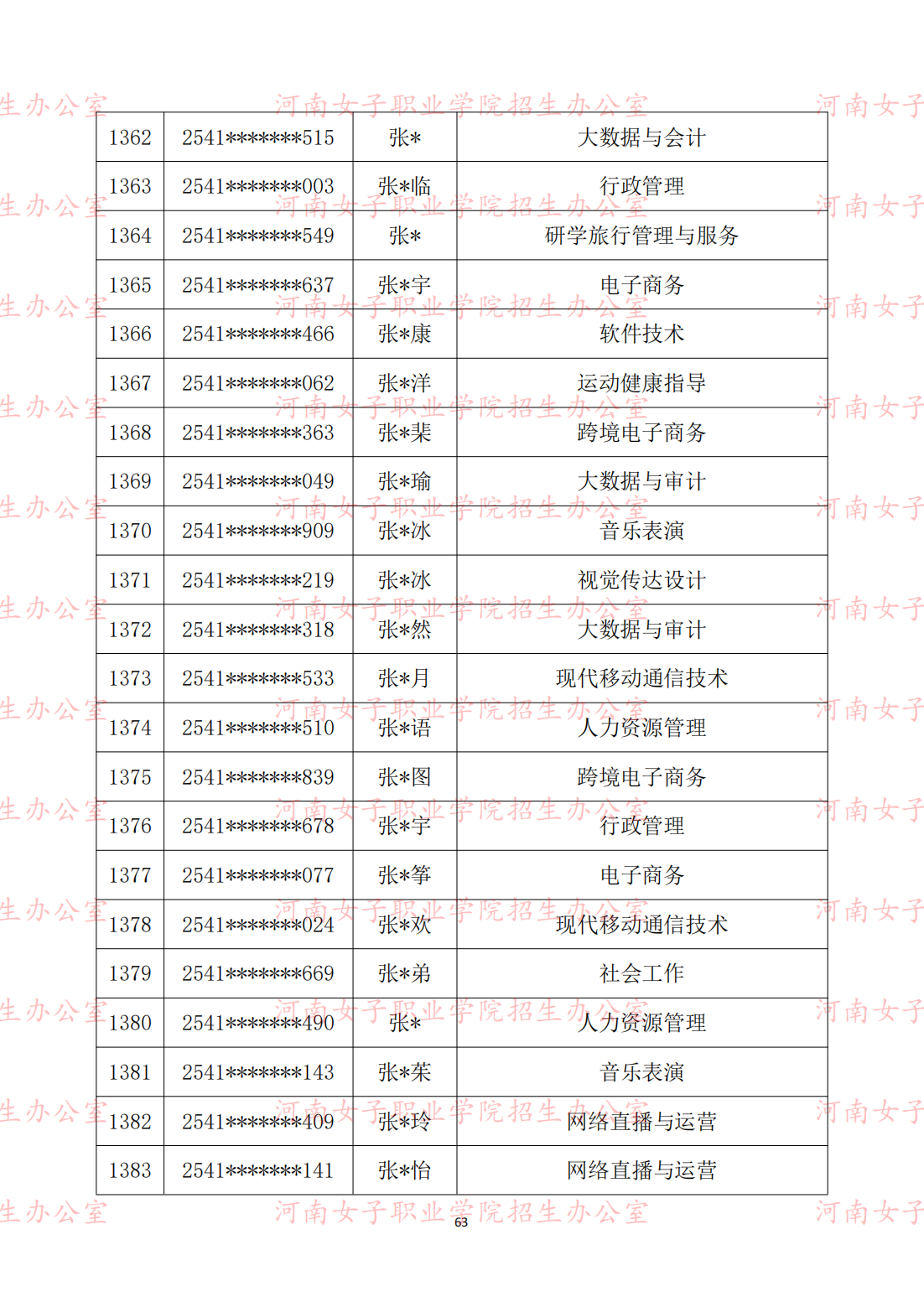 河南女子职业学院关于2025年高职单招拟录取名单的公示
