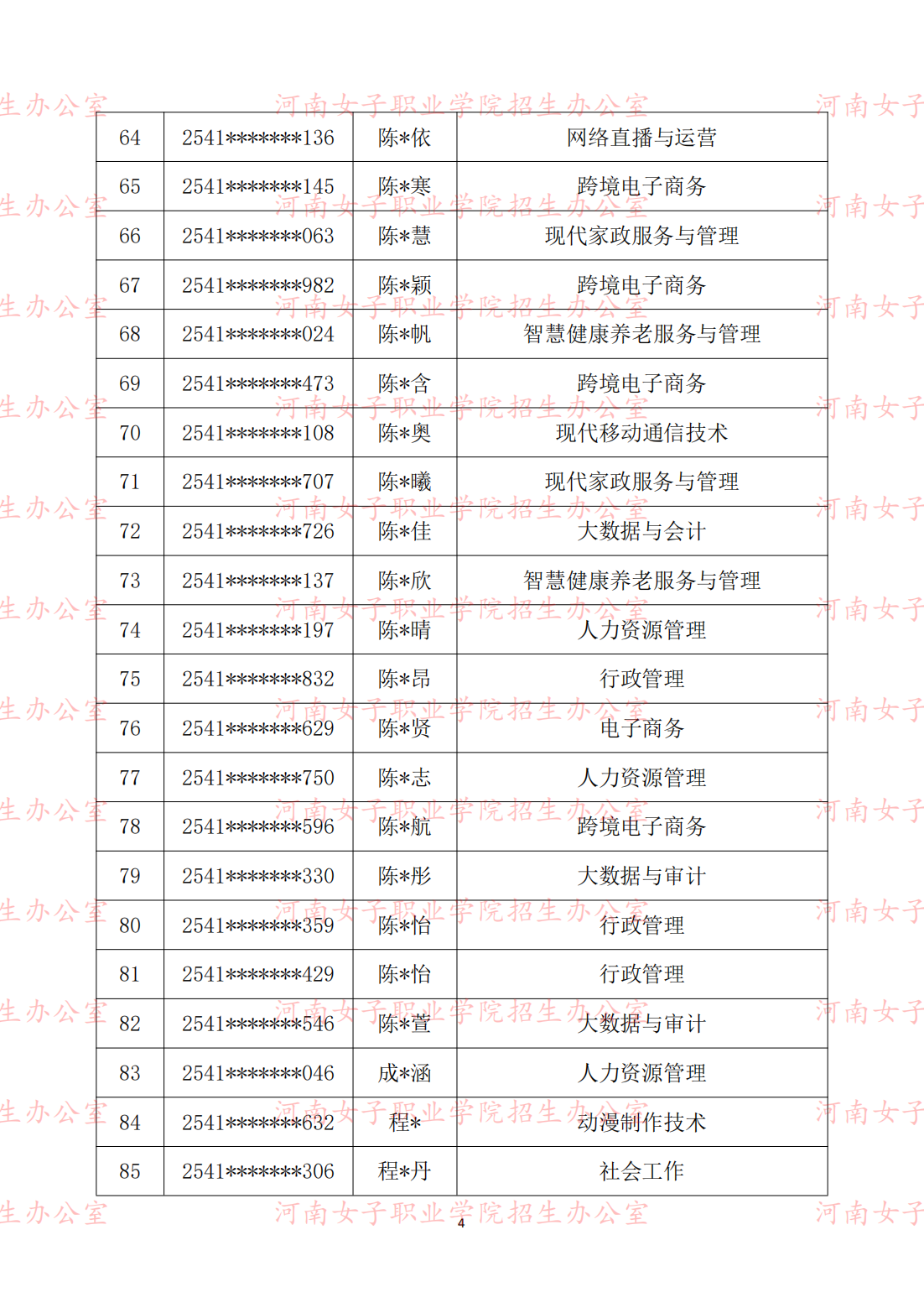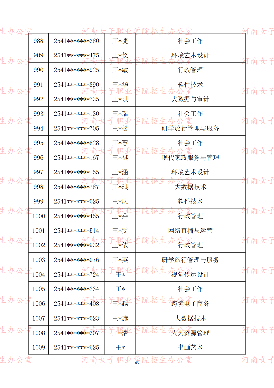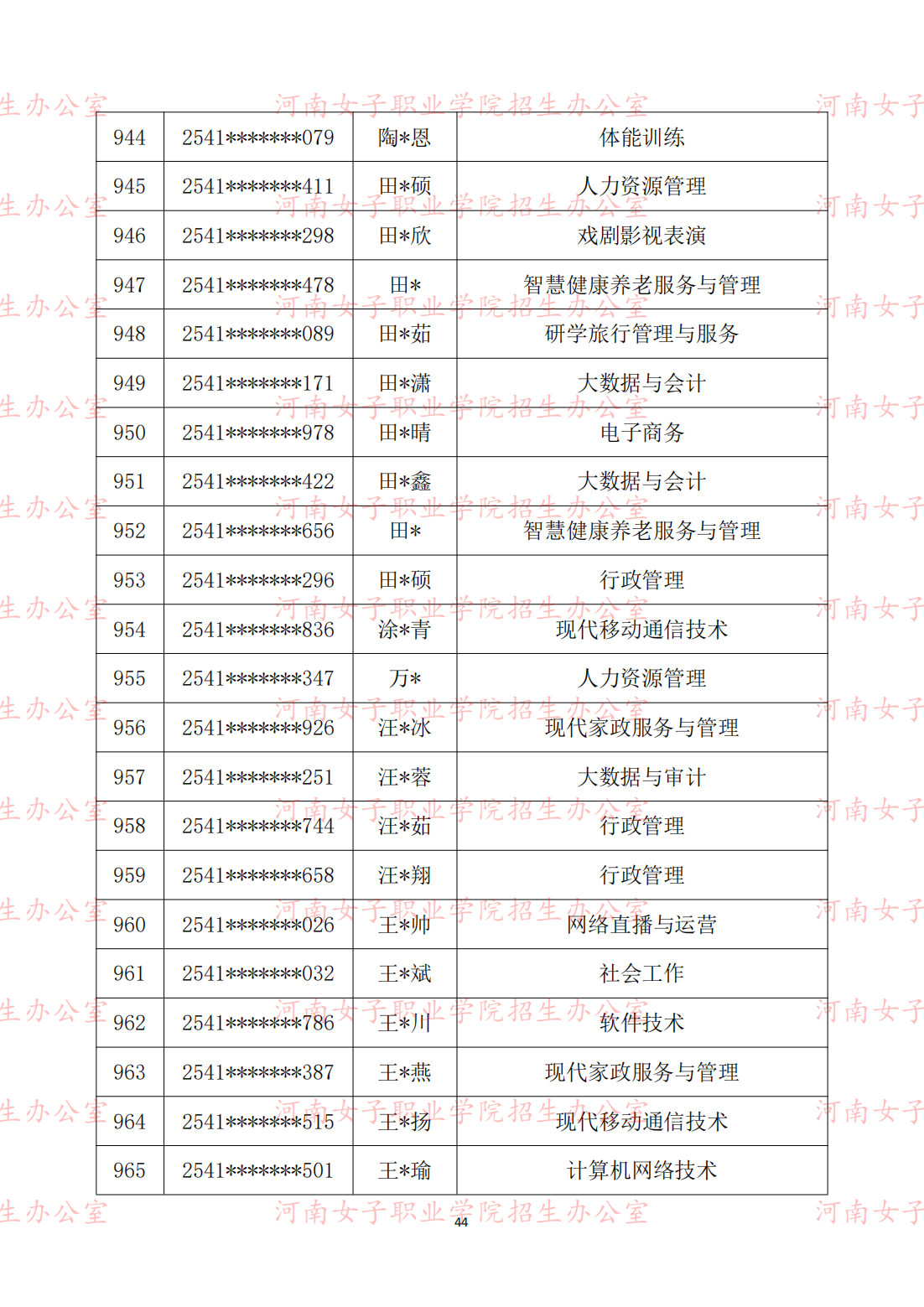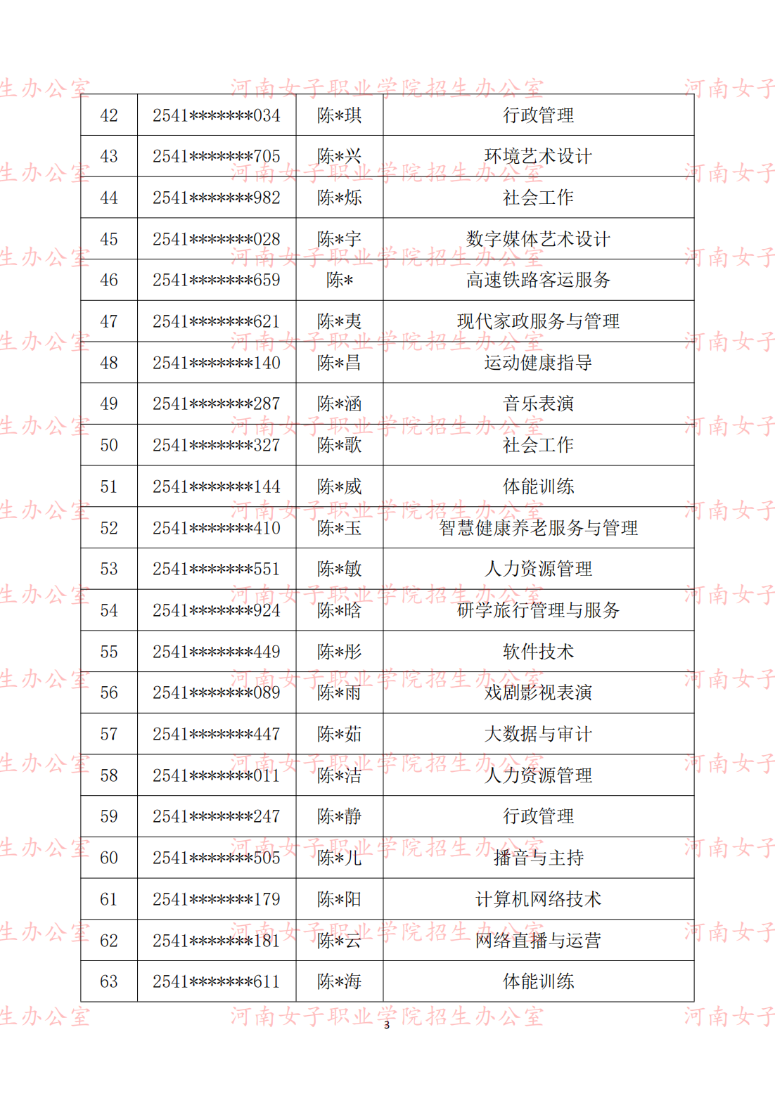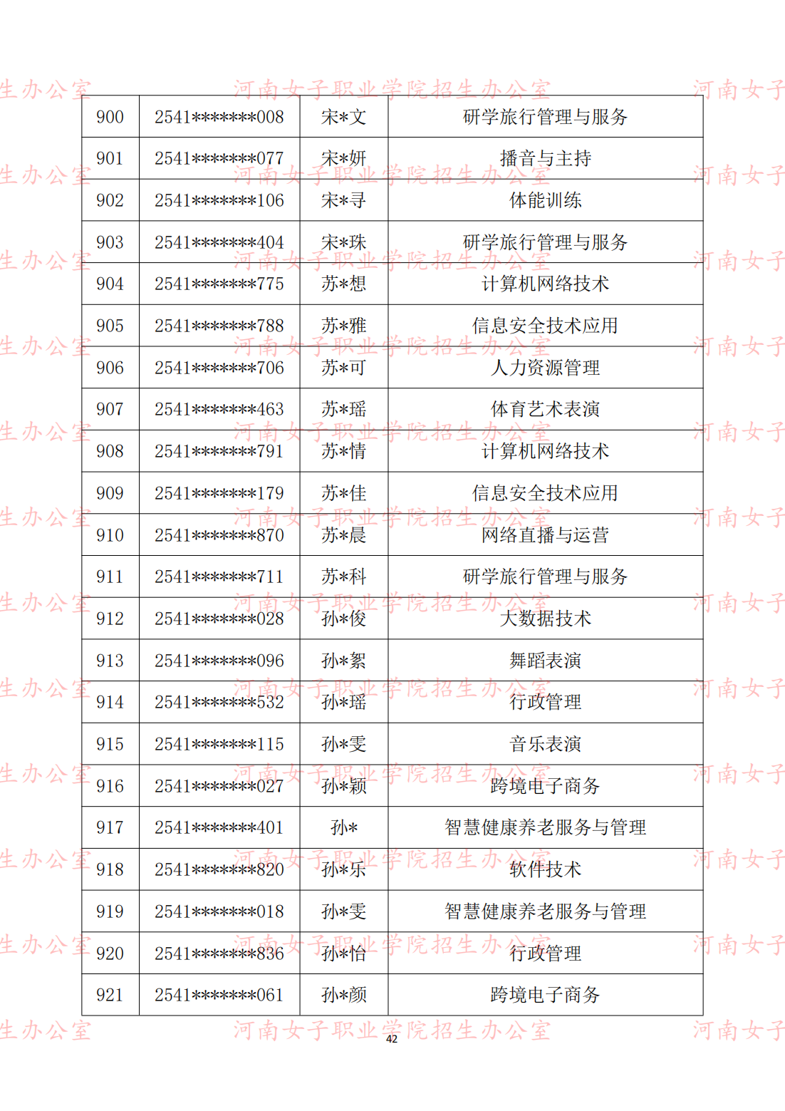 河南女子职业学院关于2025年高职单招拟录取名单的公示
