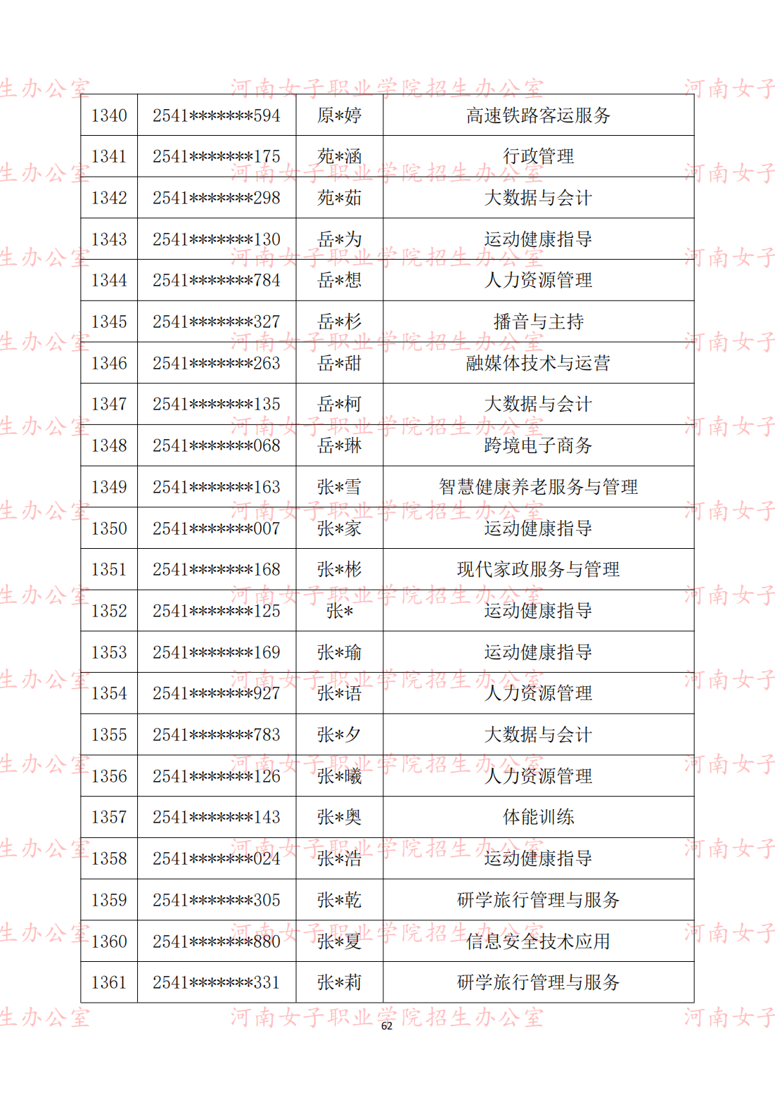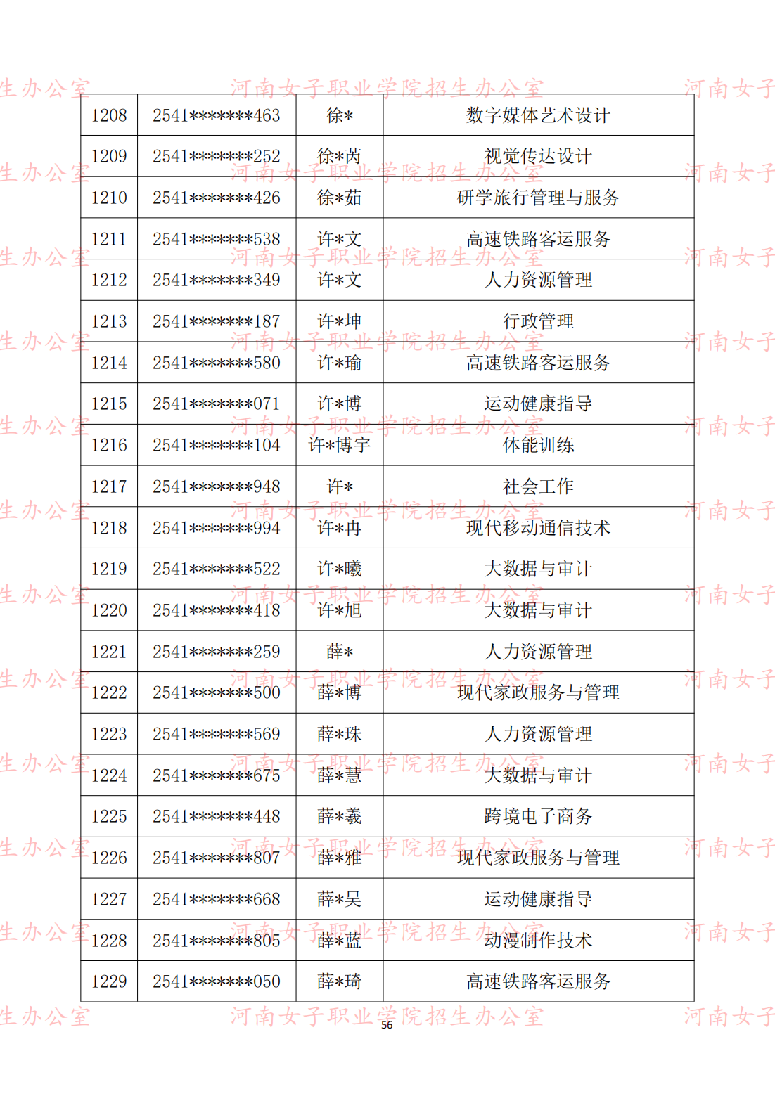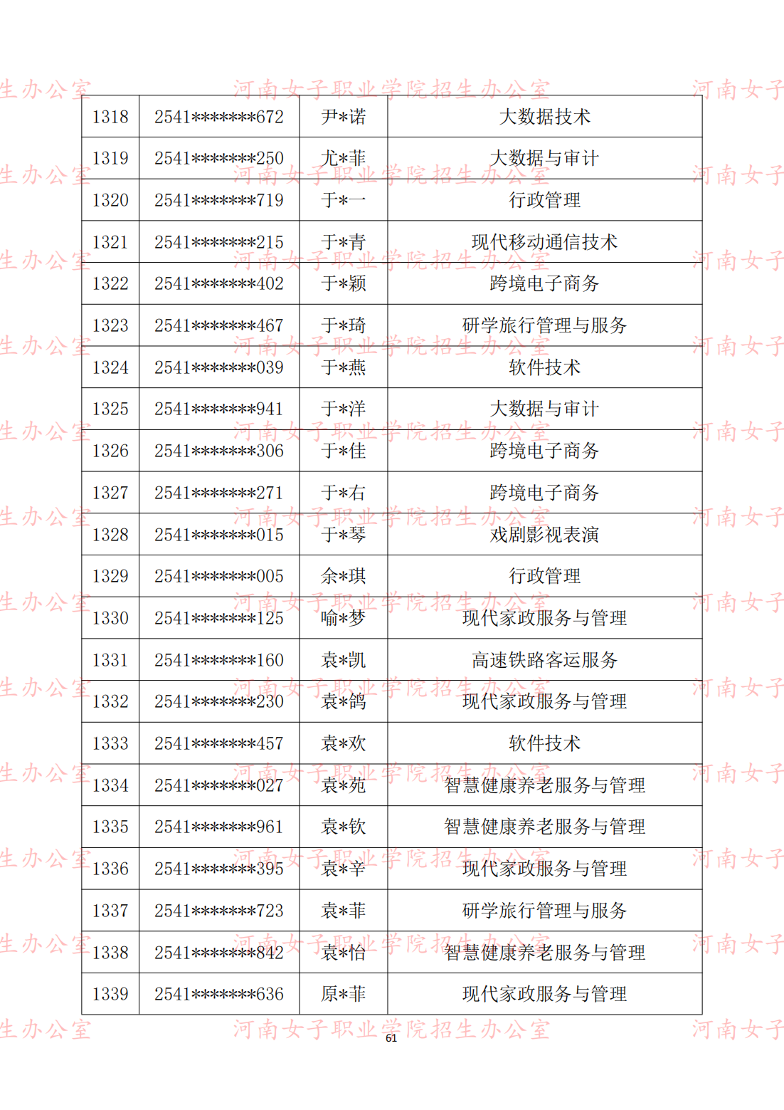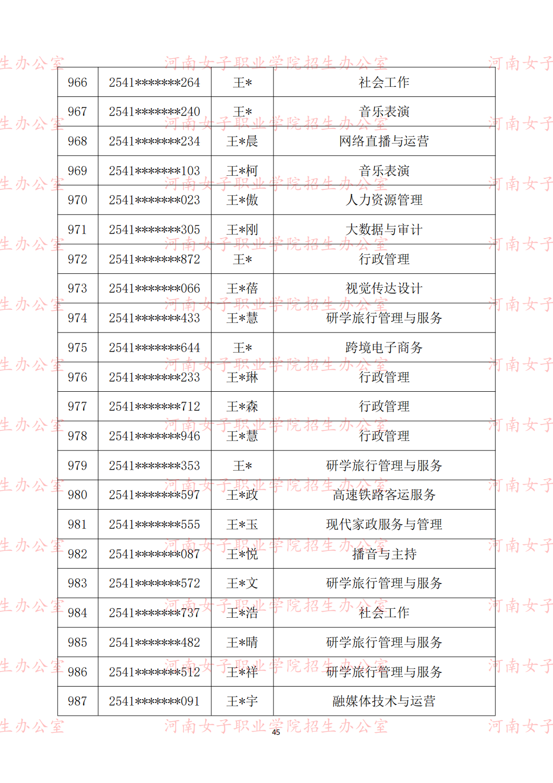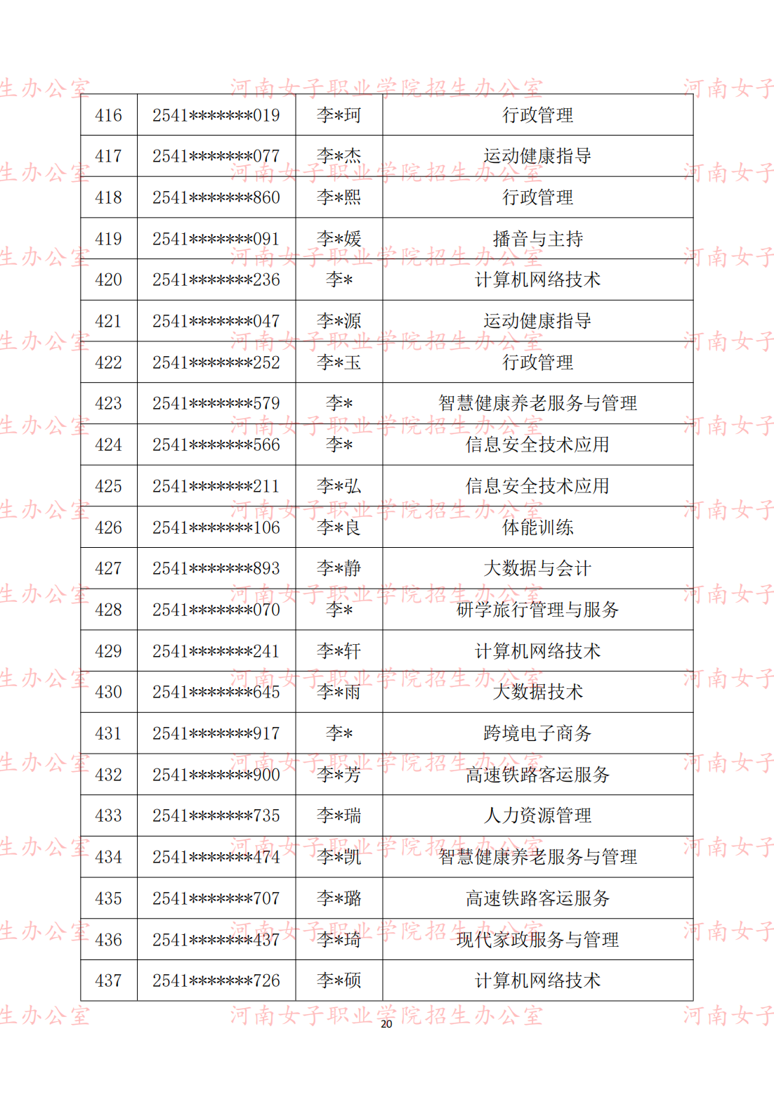 河南女子职业学院关于2025年高职单招拟录取名单的公示