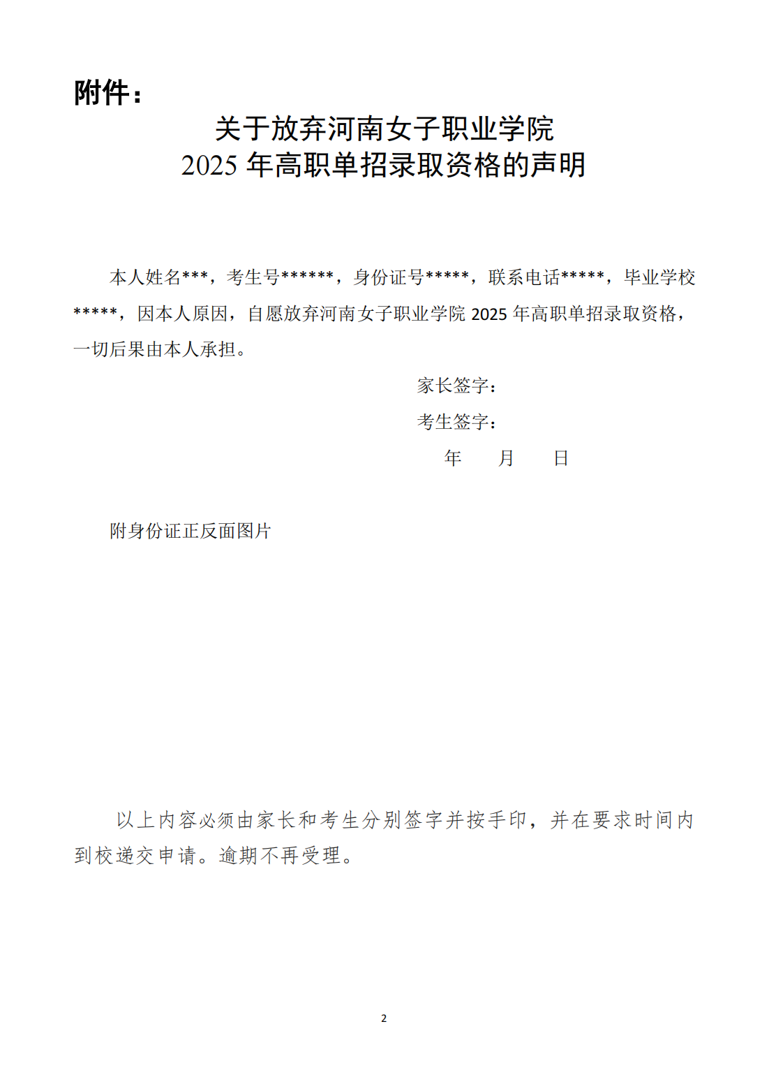 河南女子职业学院关于2025年单招考试成绩查询的通知