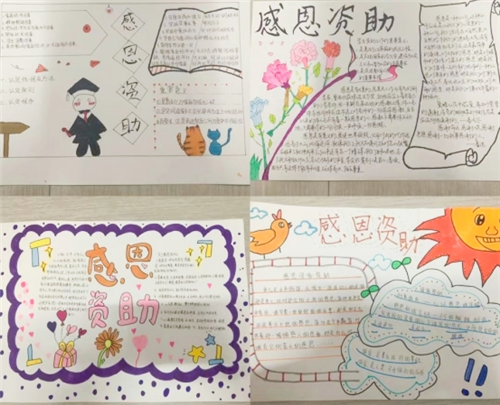 本次宣传资助政策“两节课”活动,分为召开主题班会和手抄报比赛两个部分进行。在主题班会中,各班班主任向学生介绍国家和学校各项助学政策,让同学们熟悉各项资助项目的办理流程,使经济困难的学生能够感受到党和政府以及学校的关怀。在手抄报比赛中,同学们用画笔和线条,表达出对国家资助政策的感恩之情,助力政策宣传。