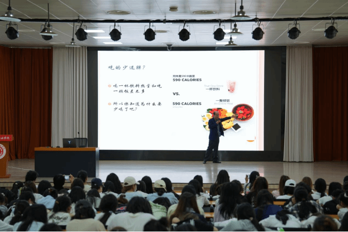 讲座过程中,刘伯语结合临床案例与权威数据,分析了我国肥胖率攀升的现状及其对健康的潜在威胁,通过科学指标,引导师生理性判断自身体质,并针对“为什么吃撑还总饿?”“吃得少却瘦不下来”等常见困惑进行讲解,指出盲目节食的误区,提出“营养均衡、热量合理”的饮食原则。围绕科学减肥方法,刘伯语讲到基础代谢率的重要作用,分享了安全、健康地提高基础代谢率的方法。