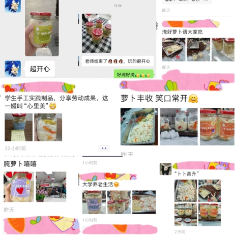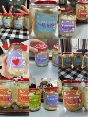 活动当天,现场早早便洋溢着欢声笑语。在社团工作人员的指导下,学生们有序入场,分工合作,按照自己的口味和喜好,沉浸式参与萝卜切片、辅料搭配、调料配制、分装封罐等工序,忙得不亦乐乎。许多同学表示,这是她们第一次尝试自己动手腌制萝卜,感到既新奇又有趣。