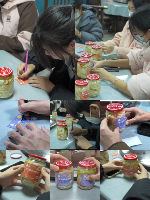 随着一罐罐腌萝卜完成封装,学生们纷纷拿起彩笔,将满满的心意写在标签上,让每一份“腌萝卜”都拥有了专属祝福。