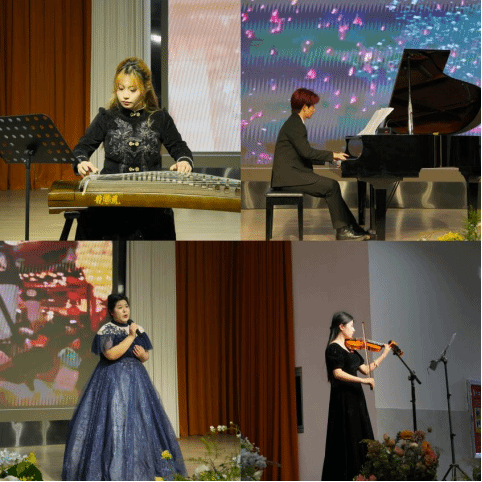 闭幕式上,音乐与传媒学院学子呈现了一场艺术与专业交融的视听盛宴。从声情并茂的朗诵《呼兰河传》到中西合璧的声器乐合奏《青玉案·元夕》,学子们以扎实的功底与创新的编排,展现了对专业技能的精准把控与艺术表达的深度思考,彰显了我?!耙匀傺А⒁悦烙恕钡慕萄С晒?。