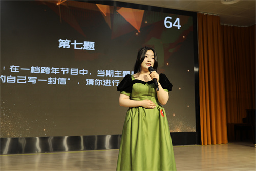 主持人大赛共分为两个环节:第一个环节是 90 秒的“风采展示”,第二个环节是 90 秒的“模拟主持”。十一名选手依次上台,比赛现场氛围浓烈,观众情绪高涨。风采展示环节,们选手用自己的方式, 向评委与观众展示他们的风采。模拟主持环节,选手们展现出扎实的专业素养和出色的应变能力,以生动的语言、敏捷的思维和出色的表现力,将现场气氛推向高潮。