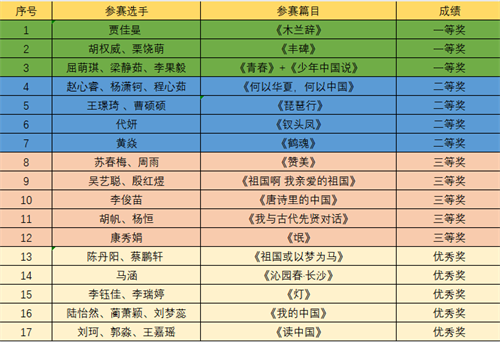 经过评委认真公正评选,最终评选出了一等奖3个、二等奖4个、三等奖5个和优秀奖5个。参赛选手们表示,通过参加这次比赛,自己不仅锻炼了语言表达能力,提升了文化素养,还深刻感受到了传统文化的魅力和价值。