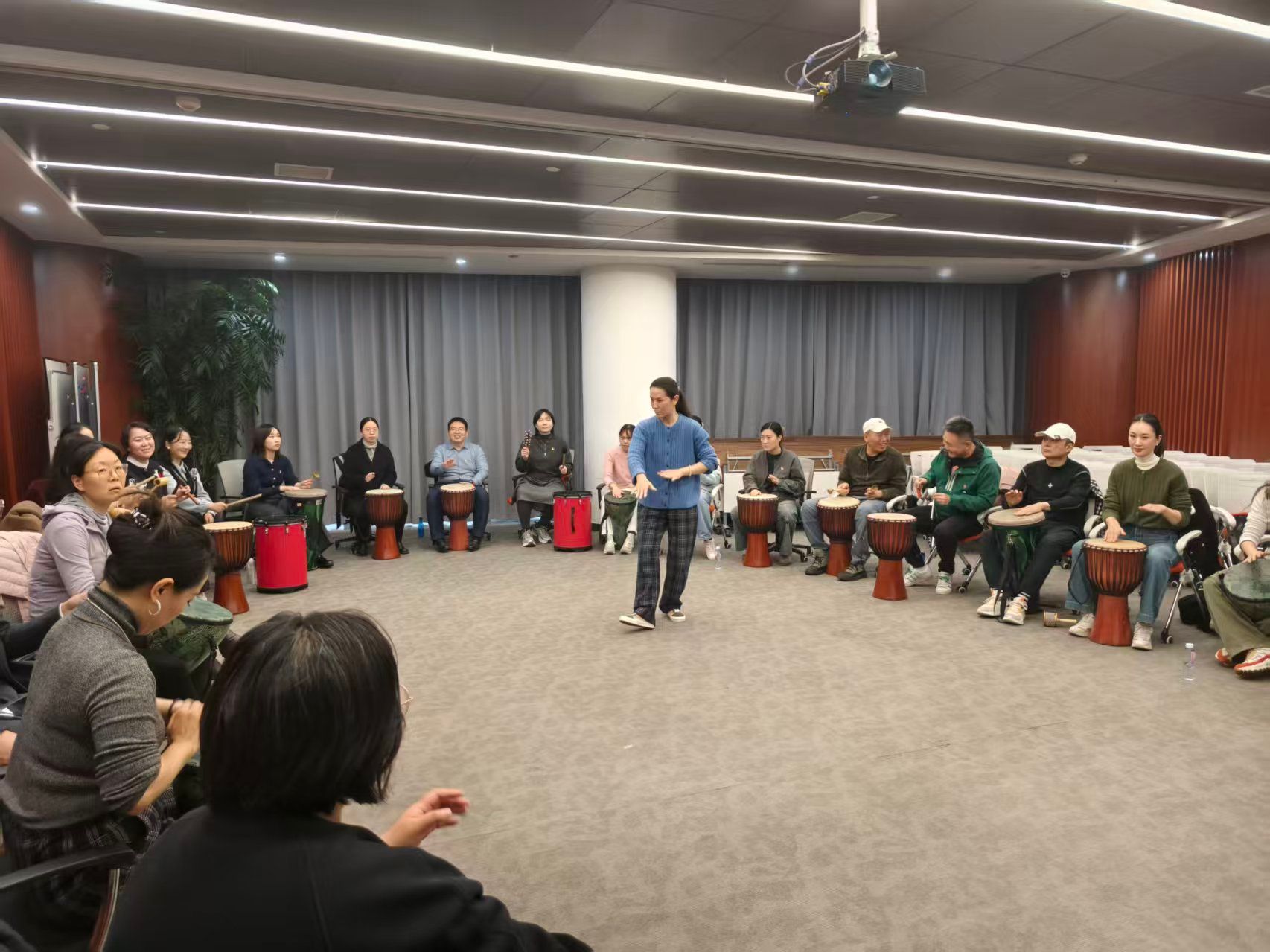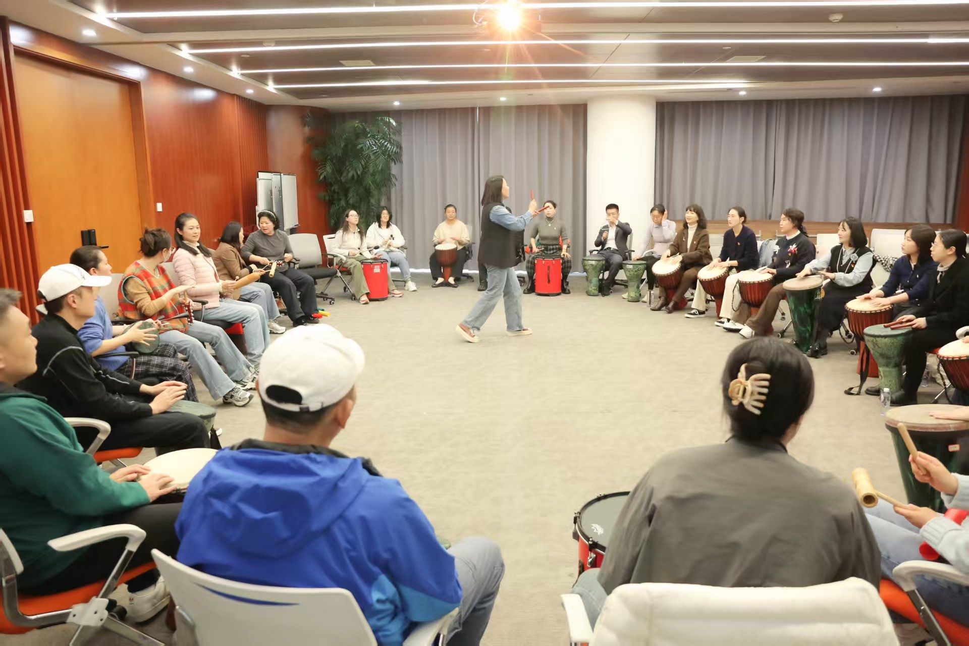 活动现场,来自法律、传媒、社区、教师等不同战线的党员们围坐成圈,在专业引导师的引导下,通过非洲鼓、沙锤、串铃等乐器展开即兴创作。没有乐谱约束,无需专业基础,参与者仅凭节奏感知与团队协作,便完成了从陌生到默契的转变。郑州广播电视台的党员纷纷感慨,当三十双手敲出同一组节奏时,我真正感受到了“同心同频”的力量。